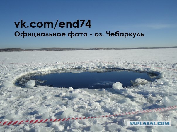 Вот ведь-ж блин((( до сих пор не нашли куда упало((( или скрывают(((: "В Челябинской области найдено предварительное место падения метеорита, сообщил в пятницу официальный сайт губернатора региона. «По последней информации оперативного штаба, созданного по поручению губернатора Михаила Юревича, метеорит, прошедший над территорией Челябинской области, упал в водоем в 1 км от города Чебаркуль», — говорится в сообщении. Город Чебаркуль находится в 70 км к западу от Челябинска и окружен озерами; о каком из них речь, в сообщении штаба не уточняется." Концы, как говорится, в воду((( Комменты рвут: ---Какие нахер беспорядки? Где?! ---В чебаркуле. 0безумевшие журналисты пытаются прорваться к метеору. ---Где можно будет купить воду из Чебаркуля? -------------------- Жизнь не удастся - если ты сам неудался...