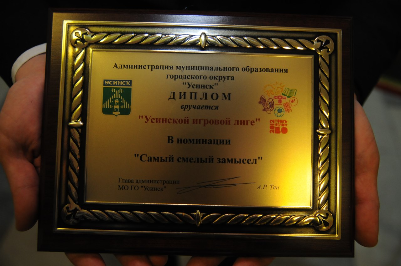 Усинская Игровая Лига сегодня на церемонии закрытия Года Молодежи получила приз в очень интересной номинации - "За самый смелый замысел".