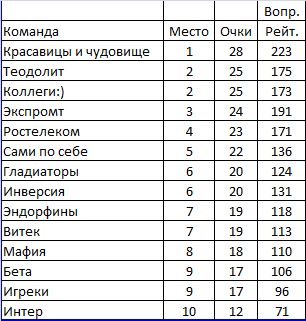 Gammbit, а кто команды приглашал и по каким критериям? Команды ЕУ и Инверсия понятно: первое и второе место в рейтинге. По логике вещей еще одним участником должна быть команда Теодолит. Алмазгазмяснефтеинвестплюс занимают в рейтинге 14 позицию из 26. Непонятно....