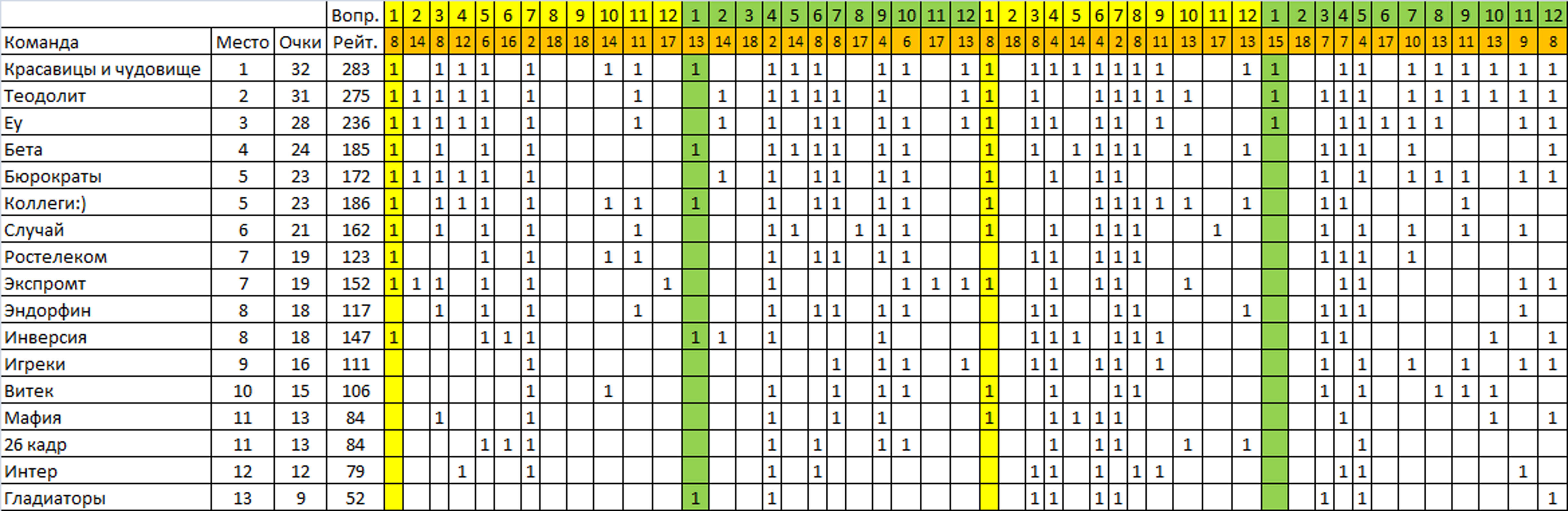 В общем планируется игра 24 числа. Там придумаем как добрать оставшуюся команду. Завтра точно сообщу будем играть или нет. В Сыкте будет игра на очки и место только 31 числа, так как мне тут сказали что все официальные игры проходят по схеме 12 вопросов на 4 тура. Значит все четыре тура отыграем 31 марта. Пока так. Позже больше. -------------------- Я сказал всё, что нужно было сказать, и я уверен в своих аргументах...