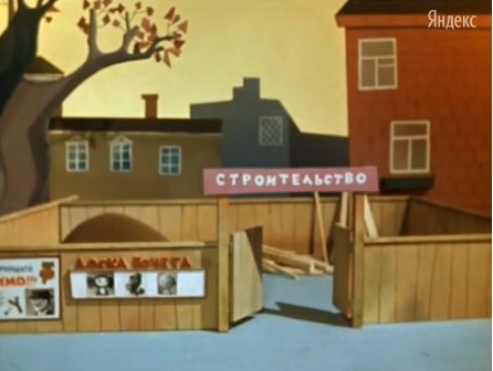 Вопрос 107: (Hun) Перед вами кадр из известного мультфильма про Чебурашку и крокодила Гену как видно запечатлен момент на котором герои мультфильма начинают сторить дом для друзей. Территория строительства огорожена. Слева от ворот висят две доски. На правой изображен Чебурашка, Гена и девочка Галя и называется она "Доска почета" а на левой изображена старуха Шапокляк и две буквы "МО" Внимание вопрос: Как называется вторая доска? (что написано большими буквами на левой доске?) Непроходите МИМО -------------------- |