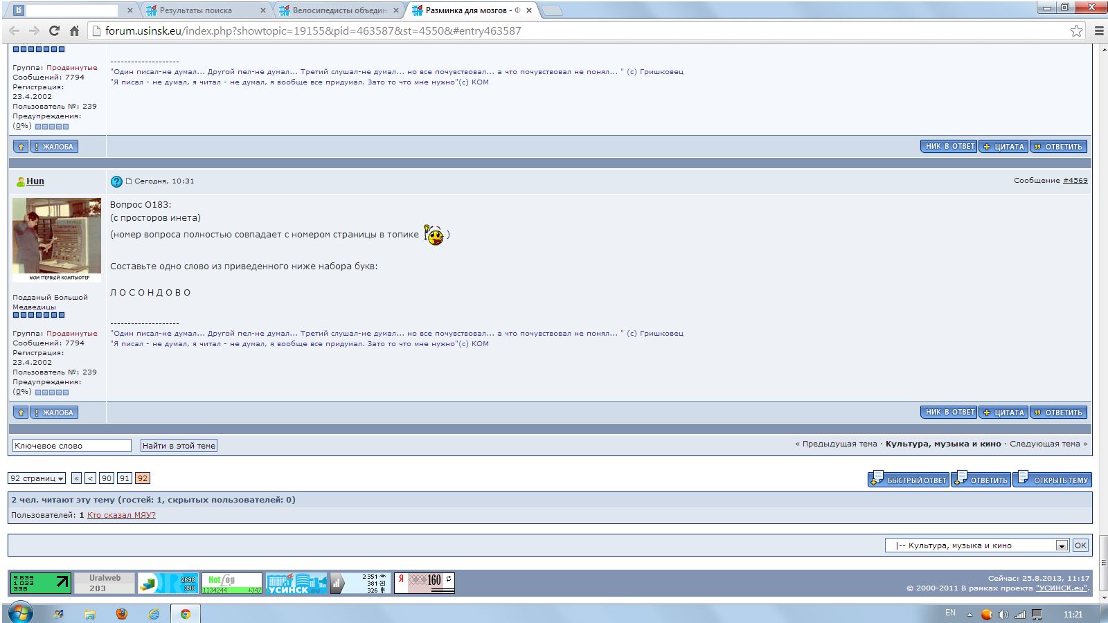 Обычный Гугль Хром))) У тебя наверено в личных настройках количество сообщений на листе отличается от количества по умолчанию Я в шоке!!! Думаем еще -------------------- И только за жабры подвешенный ерш