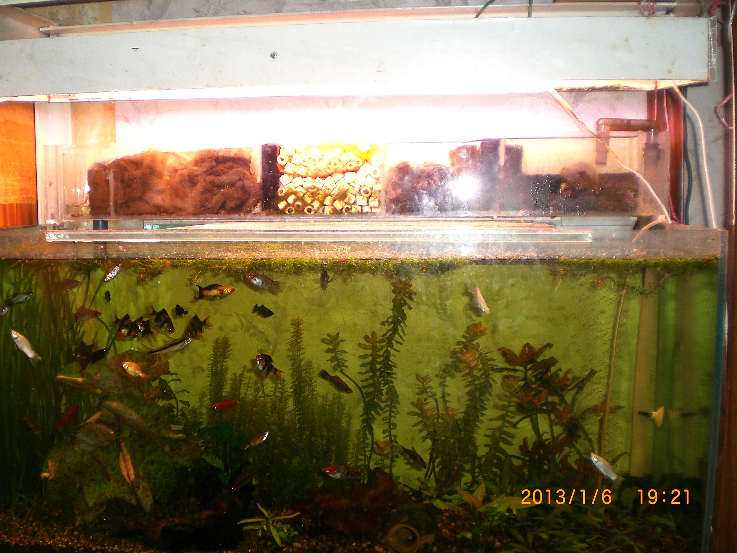 1. Фильтр обходится очень дешево. 2. Абсолютно безопасен от потопа, поскольку он установлен на аквариуме, то в случае протечки, вероятность которой крайне низка, вода потечет в аквариум, а не к соседям. 3. Удобен в обслуживании. Наполнители можно вытаскивать и мыть не выключая фильтр. 4. Так как данный фильтр открытый, в случае отключений электроэнергии, бактерии живущие в субстрате не задохнутся, как это произошло бы в канистровом внешнем фильтре. 5. Работает практически бесшумно. Но это пункт наверное во многом будет зависеть от удачного выбора помпы. 6. По качеству фильтрации намного превосходит канистровые внешние фильтры, про внутренние фильтры и говорить не стоит. 7. При необходимости легко превращается в фитофильтр. Это актуально для владельцев малавийских цихлид или золотых рыбок. Для многих может оказаться немаловажным вопрос эстетики. Но он решается просто. Фильтр можно обделать самоклейкой или пластиком и привести в цивильный вид. Если его встраивать в крышку, состоящую из нескольких съемных панелей, то тогда все еще проще. Сообщение отредактировал Барбус - 16.2.2013, 11:14 -------------------- Мир спасут красота и массовые расстрелы.