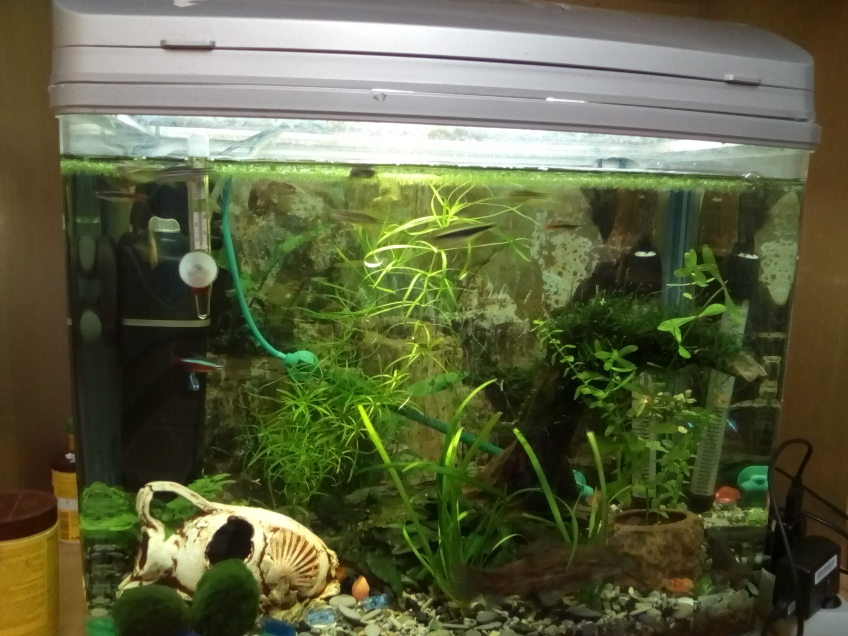 Lionksa, а я такой хочу на работу...мне нравится. Все в нем есть и фильтр и компрессор. А рыбки можно тех же гуппи или двух неонов. Или петуха. Растения и криветок. Все....работает от USB.