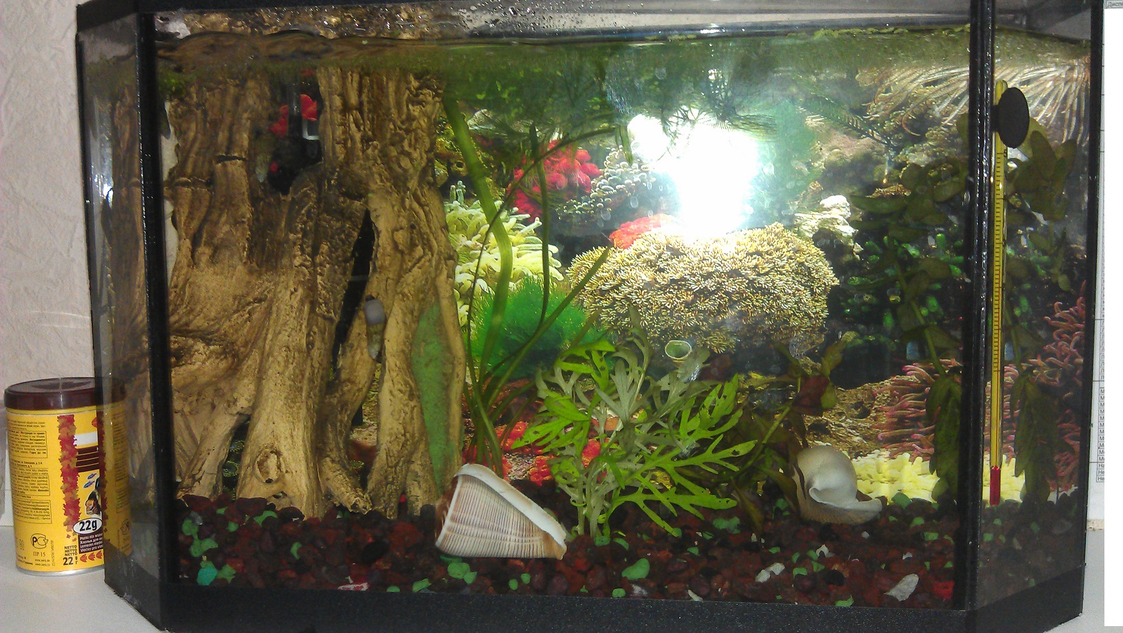 Это ещё не окончательный вариант конешно ещё будет слой мелкого грунта добавлен и высажена травка мелкая ( как только найду) покрывающее всё дно. -------------------- |
