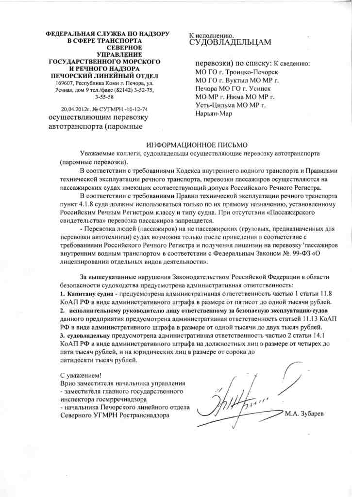 Лицензии щас все отменили, в том числе и на перевозки водным транспортом Интересно, а о какой лицензии тогда идет речь в информационном письме? -------------------- |