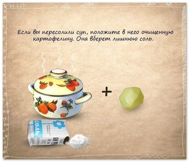 многие поражают своей "практичностью" решил тут разместить некотрые из советов: Порошковые чистящие средства часто слеживаются и перестают сыпатся из отверстийв крышке банки. Поместите в банку с порошком шарик от компьютерной мыши и перед употреблением слегка встряхивайте банку (НиЖ №8, 1999) Варить макароны в кипящей воде 10 минут необязательно. Бросьте макароны в кипящую воду, доведите ее до кипения, накройте кастрюлю крышкой и снимите с огня. Пусть постоит 20 минут, за это время один-два раза перемешайте содержимое. (НиЖ,№9,2005) ![]() Отвертку для мелких винтиков можно быстро изготовить, заточив кончик ключа от банки сардин. (НиЖ,№9,2005) ![]() Укрепите зеркало над верхней полкой гардероба - тогда вам не придется залезать на стул, чтобы увидеть, что там хранится. (НиЖ,№8,2005) ![]() Что бы решить кроссворд в журнале, который вы взяли на дом в библиотеке, и потом не лишить удовольствия следующих читателей, либо сделайте ксерокопию со страницы либо наложите поверх кальку и пишите ответы на ней -------------------- И только за жабры подвешенный ерш