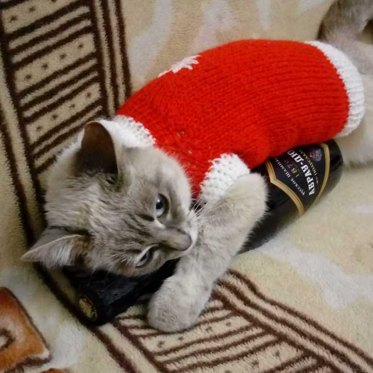 Я все-таки провела НГ без интернета и, скажу вам, это такое удовольствие! Особенно понравилось то, что люди, не найдя меня в инете, звонили сами, живыми голосами, а не слали штатные безликие подарки ))) Заодно без сети высвободилось три часа времени и Полундра обзавелась новым свитерком -------------------- Предчувствуя неладное, Му-му еще с вечера наелась пенопласта....