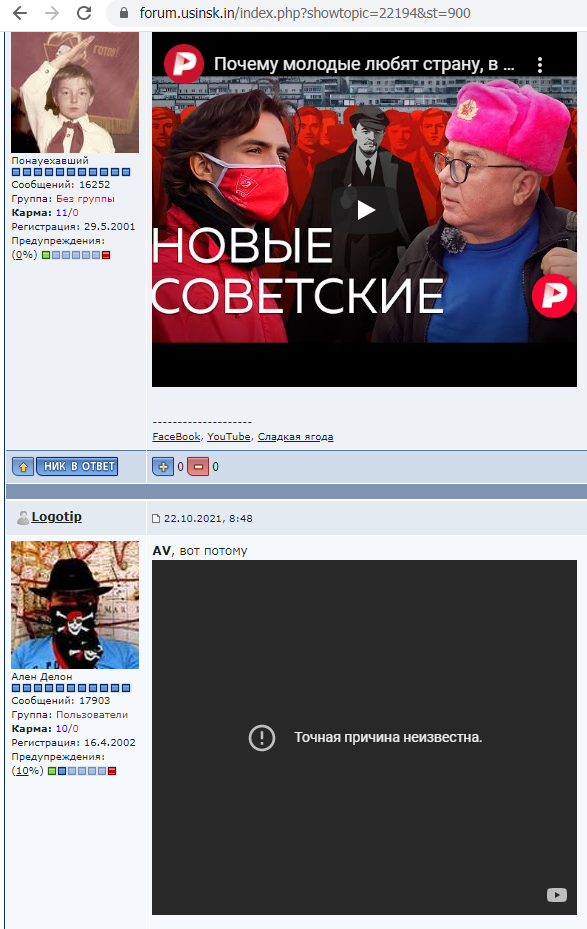 А с чего такие предположения? Извините(с)ослик Иа-Иа :-)) Там просто до этого, ещё выше, один очень завистливый чувак написал обращаясь к тебе очередную глупость. Скорее всего он у тебя в ЧС. -------------------- Пропаганда не делает из людей идиотов, она изначально на них рассчитана.