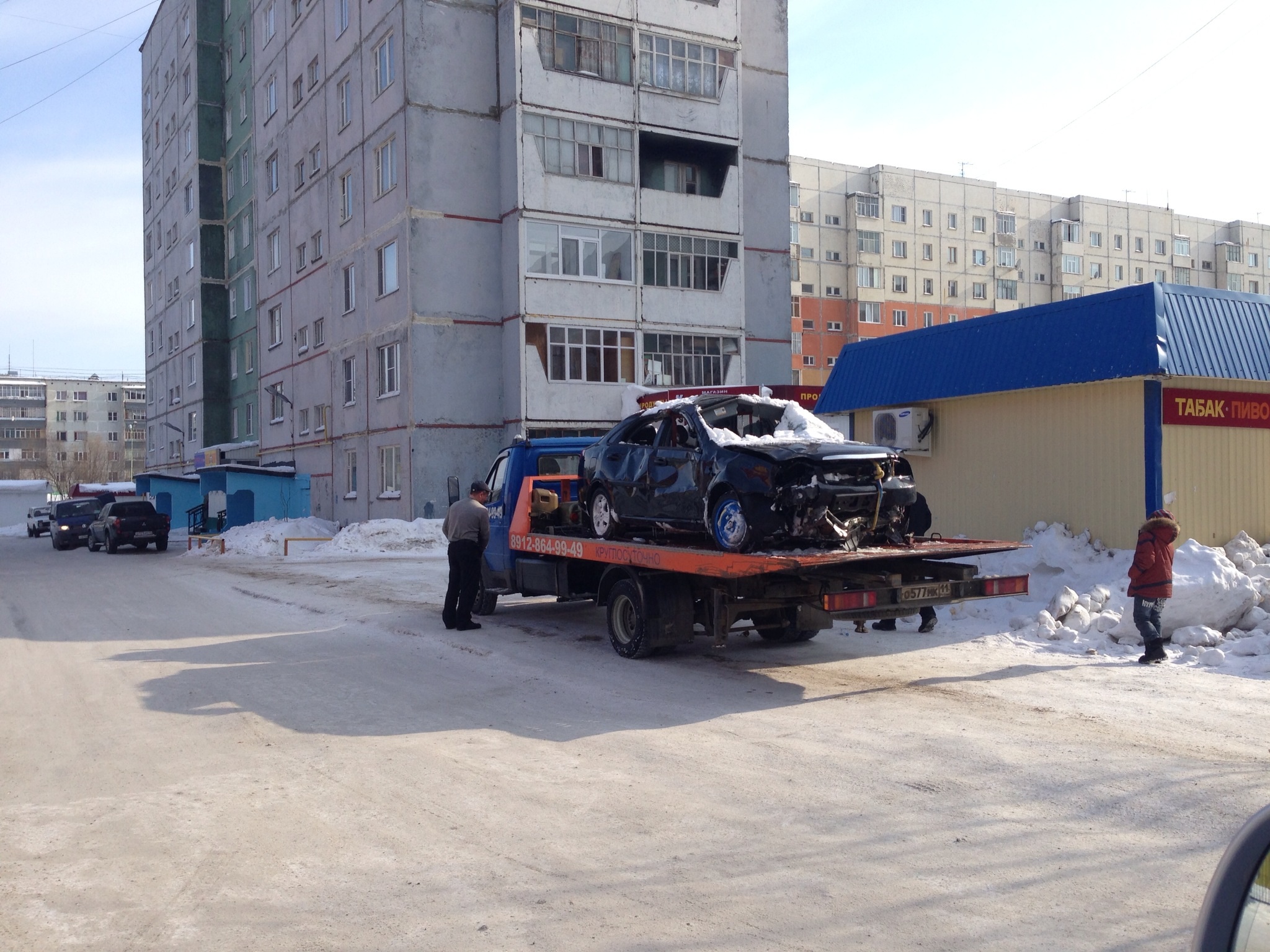И в это же время (в районе 13.00) на этом же перекрестке ВАЗ-2104 и Honda Civic очень плотно шерканулись бочинами.... Honda чуть-чуть светофор не завалила....но всю "морду" себе расквасила....печально....ВАЗ виноват.... А в это же время на транспортной между ТПП и ХК ТАЗ 10 и ФВ транспортёр. У 10ки морда в мясо у транспортёра водиловская дверь, дисюн мордой на снежном брусвере. -------------------- |