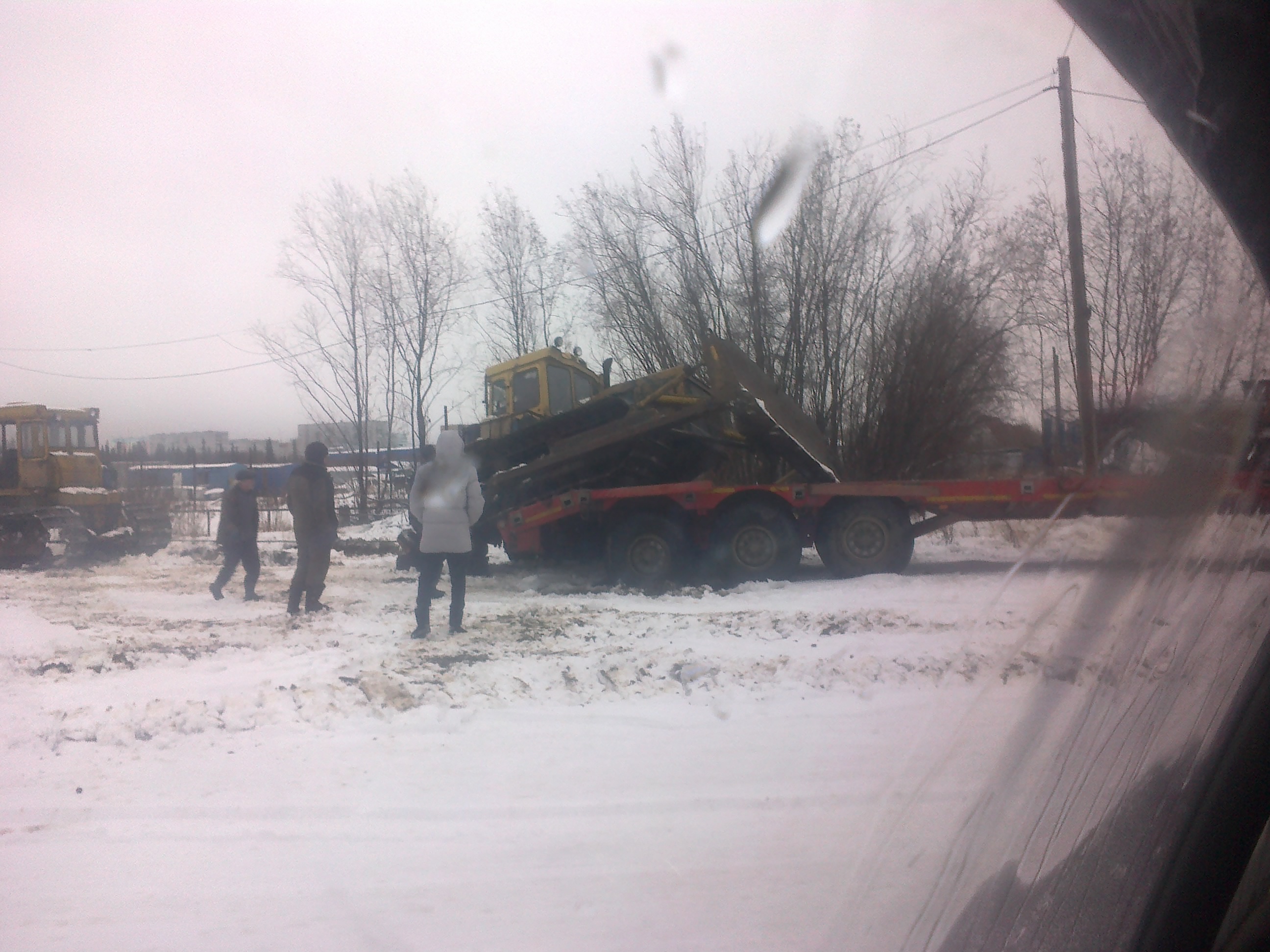 я вот думал что такое только в инете увижу..)))))))))))))) трактор пытался заехать на трал у которой нет "лап"(или как они называются правильно) и вообщем не получилось у него.))))))))))))