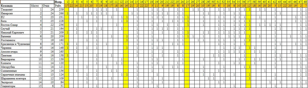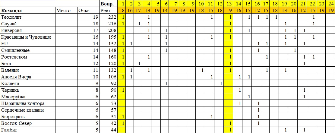 Цитата Республиканский рейтинг ЧГК. А почему 13 подчеркнуто? по итогам сезона только 13 команд будут играть в финале? |