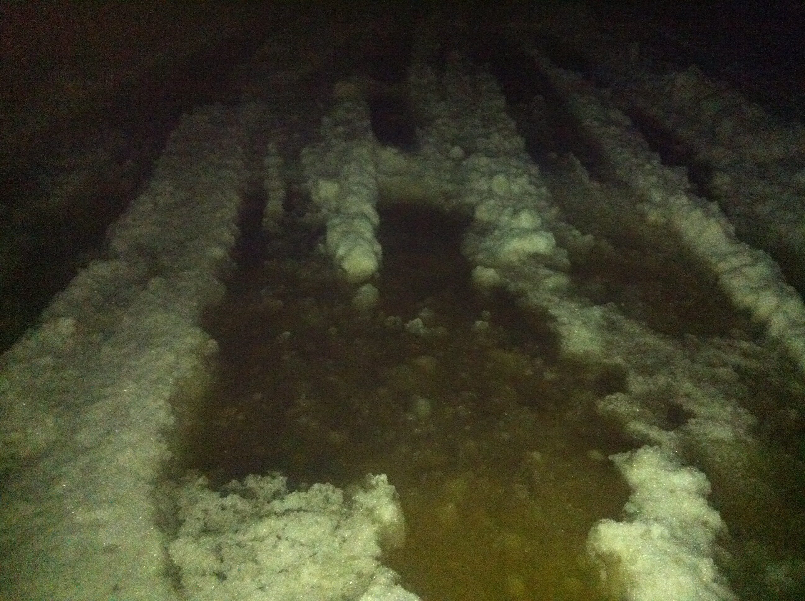 Тут сикроавтобус под лед ушел, бульдозер поехал дорогу загребать, все расчищенно было, река вся в воле, подъезды тоже, глубокие ямы в воде, я сто уже у берега, жду крузак который меня проведет по нормальному саршруту на ту сторону... Фото фото сам сделал??????????? |