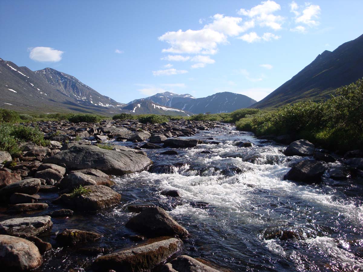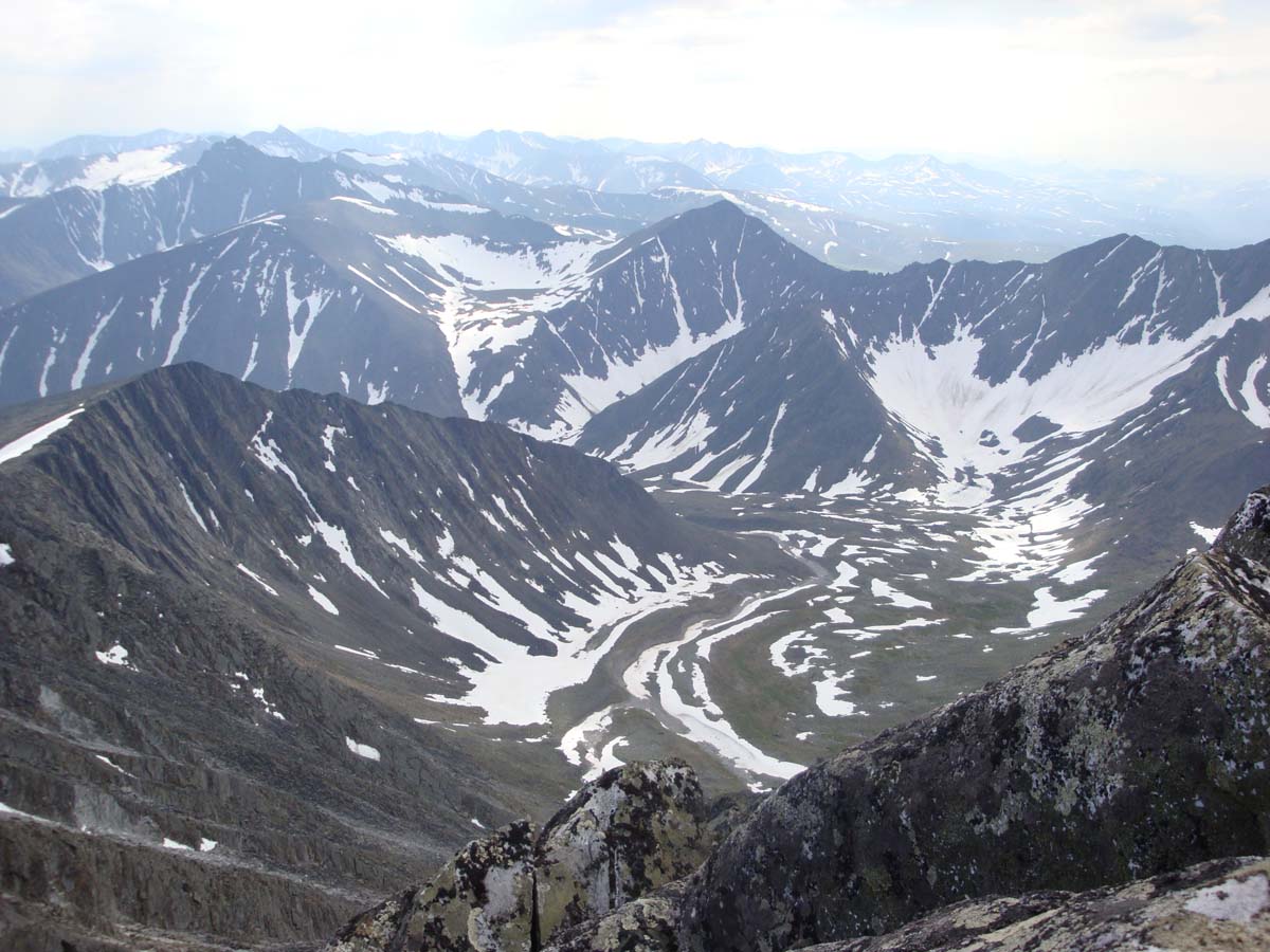 Сань, как не странно Артем мне хлопот не доставлял. И не охал и не ахал как в команде когда много людей. Идет в ровень без перекуров (оба не курим). Я ему внушил мысль, что чем быстрее идешь, тем меньше комаров, а он их ненавидет! 10-15 км в день это норма. По хорошей дороге делается за 4-5 часов, по курумнику сложнее. Но пару раз когда подавал ему руку при взятии критических точек, он у меня заслужил высказывания "Ну мужик"! Особенно когда в одиночку без связки брал ледник на Некрещеном. В общем я сыном доволен. Немного надо еще подучить самостоятельности, надеется на меня, а это не есть гуд, должен сам все уметь. Не беда, подрастет подучится.