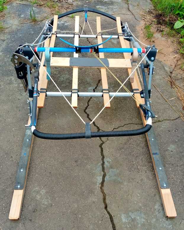 Изменил конструкцию саней практически в те же дни, что и прежние (https://forum.usinsk.in/index.php?showtopic=25696&view=findpost&p=628241). Не понравились, т.к. со временем испортилась продольная геометрия, а при нагрузке (таскал бревна для площадки под мобильную баню) стало назревать подворачивание, опять таки, левой лыжи. (https://forum.usinsk.in/index.php?showtopic=25696&view=findpost&p=629938) От предыдущей модели "остались рожки да ножки" полозья остались, а поперечины пошли на копыла, ну и плюс другая сборка. За основу взята ездовая нарта марки Шаман, модели Кукушка приобретенная в конце 2020г. Самое главное было увидеть ка крепить детали, плюс все, что удалось накопить поиском лучшего в такого рода изделиях и особенно истории о поломках. Вариант который получился сейчас кажется вполне сможет стать прототипом к постройке финальных дог-кайт саней. Материалом была стала старая полубочка подобранная прошлой весной на Харьяге, тогда покататься не удалось из-за отсутствия снега, но получается , что 260 км поездка не стала совсем бесполезной. Отсутствие хорошего материала для изготовления потребовало минимизировать постройку, с другой стороны снизился общий вес, который составляет 11,5 кг. Творческий трех суточный марафон закончился как раз к солнечным ветренным выходным, было сколь приятно покататься, столь же и необычно. В первый день пустые сани удалось несколько раз покувыркать и выявить слабое место, поломка получилась мелкой и легко исправляемой. Во второй день груз в районе 30кг в сочетании в хорошим покрытием заставил почувствовать себя грузовиком на раллийной трассе, инерция саней выросла и пришлось менять технику поворотов, делая их более затяжными. В общем изделием доволен, есть идеи по доработке, но это уже на другой раз. А сейчас буду на соревнованиях в Петозаводске, послушаю критическую оценку профи. -------------------- После нас сегодня чище, чем вчера. Тело должно двигать себя само.