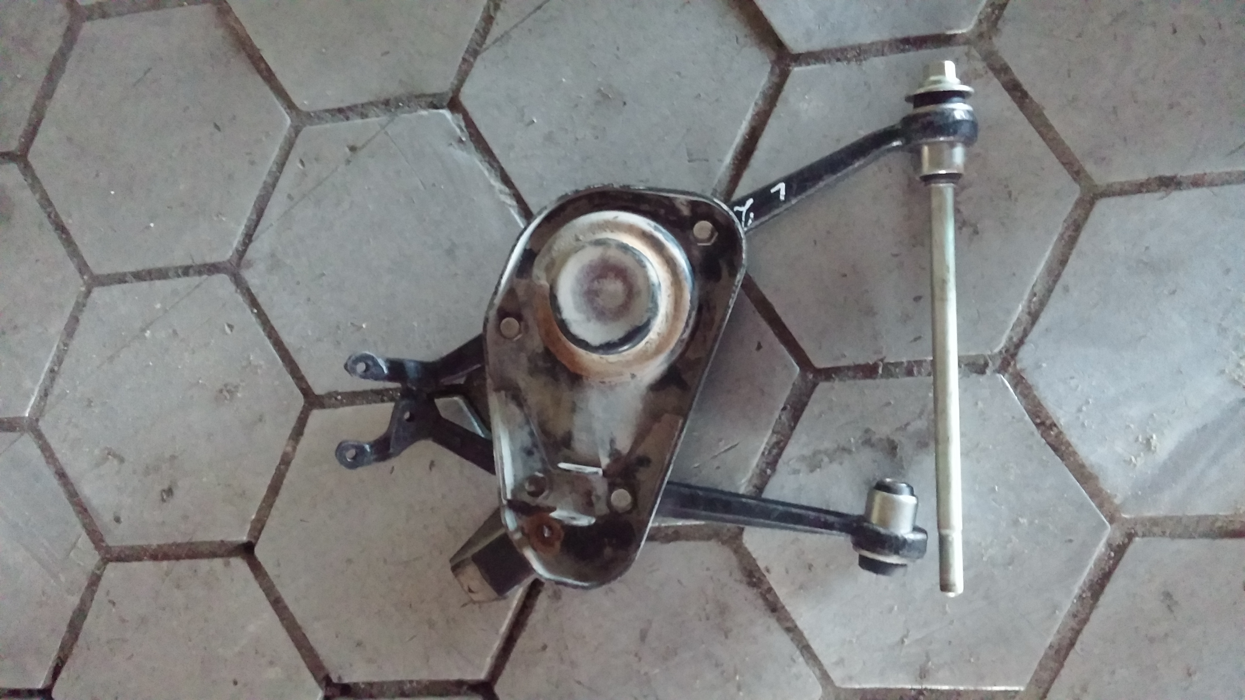 Рычаг новый просто чашка была прикручена старая . Ну и слесарь у меня матерился пытаясь всунуть болт через балку в сайлентблоки , оказалось все смешнее . Рычаг покупался в вчера в магазине и не футболился , второй почти ровный . Вот такие запчасти возят .