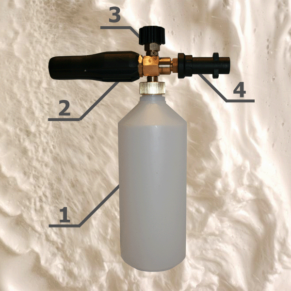 Нормальный пеногенератор нужен, типа такого: http://www.ebay.com/itm/281251329103?var=5...984.m1439.l2649