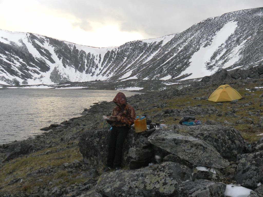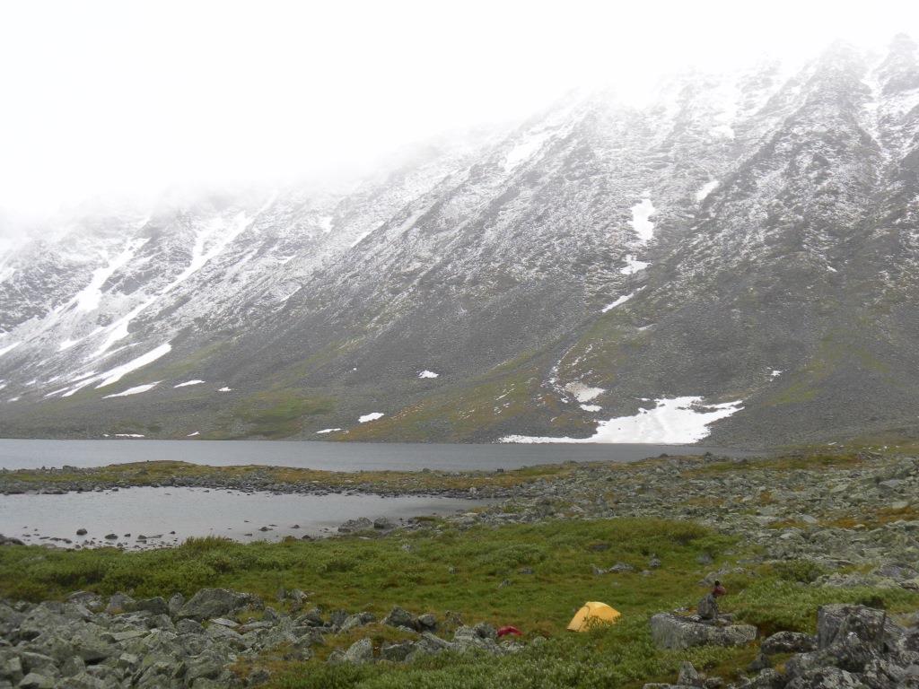 Ночью погода опять испортилась. Начали думать как будем выходить. Был вариант пройти по плато Карпинского в сторону "Цирка" - карового озера на плато. Но дорогу преграждают два истока реки Северной Народы, которые довольно крутоваты. Определиться решили на месте. После завтрака и быстрых сборов двинулись в дорогу.