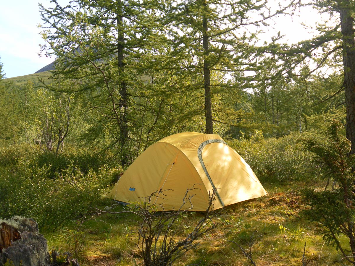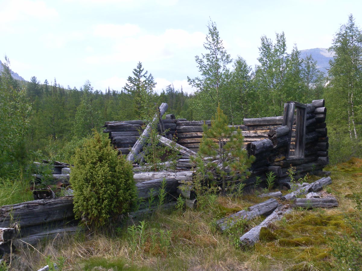 Спустившись до высоты 600 метров начинают появляться лиственницы и кедры. Собственно наш спуск был надеждой на рыбалку. Вверху рыбы нет, слишком мелко и слишком быстро. Поэтому шли до урочища Северная Народа, где сливается Сев Народа и ручей Амбаршор. Тут же идет пересечение дорог назад на Некрещеный и на Золото-шор. В середине прошлого века тут стояли геологи ведущие разведку. Остались разрушенные артефакты, куча железа и всякого мусора. Самое интересное поснимал на следующий день. Тут действительно теплее, ну и естественно костер, а не газ. Переход в 15 км выдался сложный, много сил было затрачено. Поэтому следующий наш день был днеёвкой. Планировал побегать поискать рыбки, Артем отсыпался.