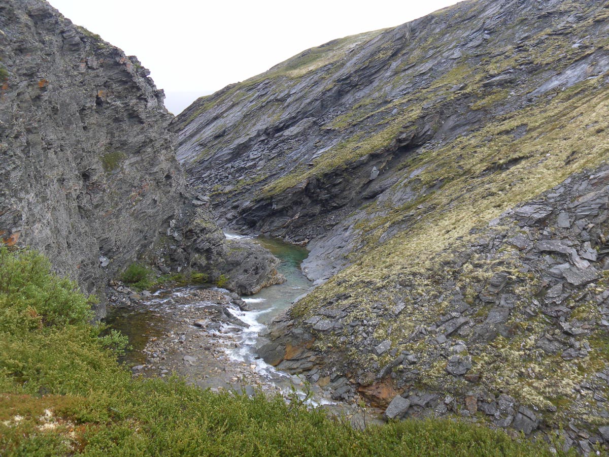 Приток по которому мы спускались названия не имеет, но я бы назвал его "Водопадный". На небольшом растоянии друг от друга находятся три красивых водопада, а в месте слияния его с Северной Народой обнаружили "Гранд каньон" который пришлось облазить по горам. И как увидели потом не зря, внизу была ловушка.