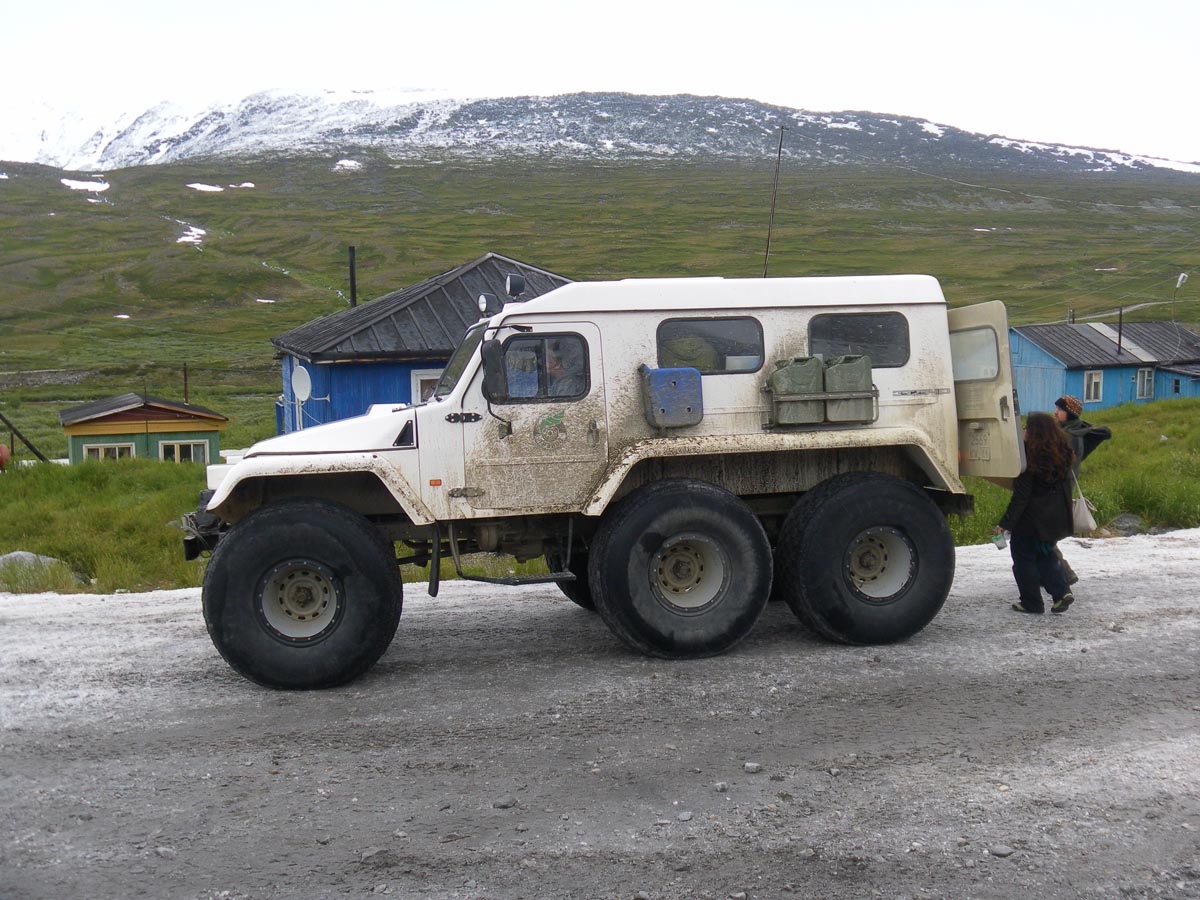 Утром вышли на Желанный. Колею в дороге затопило, скольская жижа и глина. В реке вода прибыла. Температура не выше +5, моросящий дождь. Пришли на Желанный в 12 часов, машина должна быть в 15. Купили хлеба, консервов, печенья и перекусили. На улице был сделан шатер типа шашлычки в нем тусило около 10 художников из Сыктывкара. Познакомились с очень интересными людьми Сергеем Соколовым и Еленой Шубнициной, оба туристы со стажем. Здесь были в рамках проводимого плэнера "Клюква" организовывали художникам поездки по разным местам, а те рисовали с натуры. Художники нас обогрели и напоили чаем. Машину мы так и не дождались. У директора этого рудника есть спутниковый телефон, дали позвонить 1 минуту - 150 руб. Позвонил и узнал что машины не будет... группа не приехала заброска сорвалась, за нами двумя никто не поедет. Погода отвратительная несмотря на выходные даже местных туристов можно не ждать. Пошел искать жильё. В комплексе 1 койко место в сутки ситоит 1500 руб без питания. Договорились по 500 в домике. Короче бичарня-бичарней, но зато тепло. Переночевали там. Вечером зашел в гости Серега Соколов, принес шильца, вечер провели за бесседой. Утром они с Леной уехали, а мы не знали что нас могут взять, т.к. с вечера водилы двух самосвалов сказали нам нет.