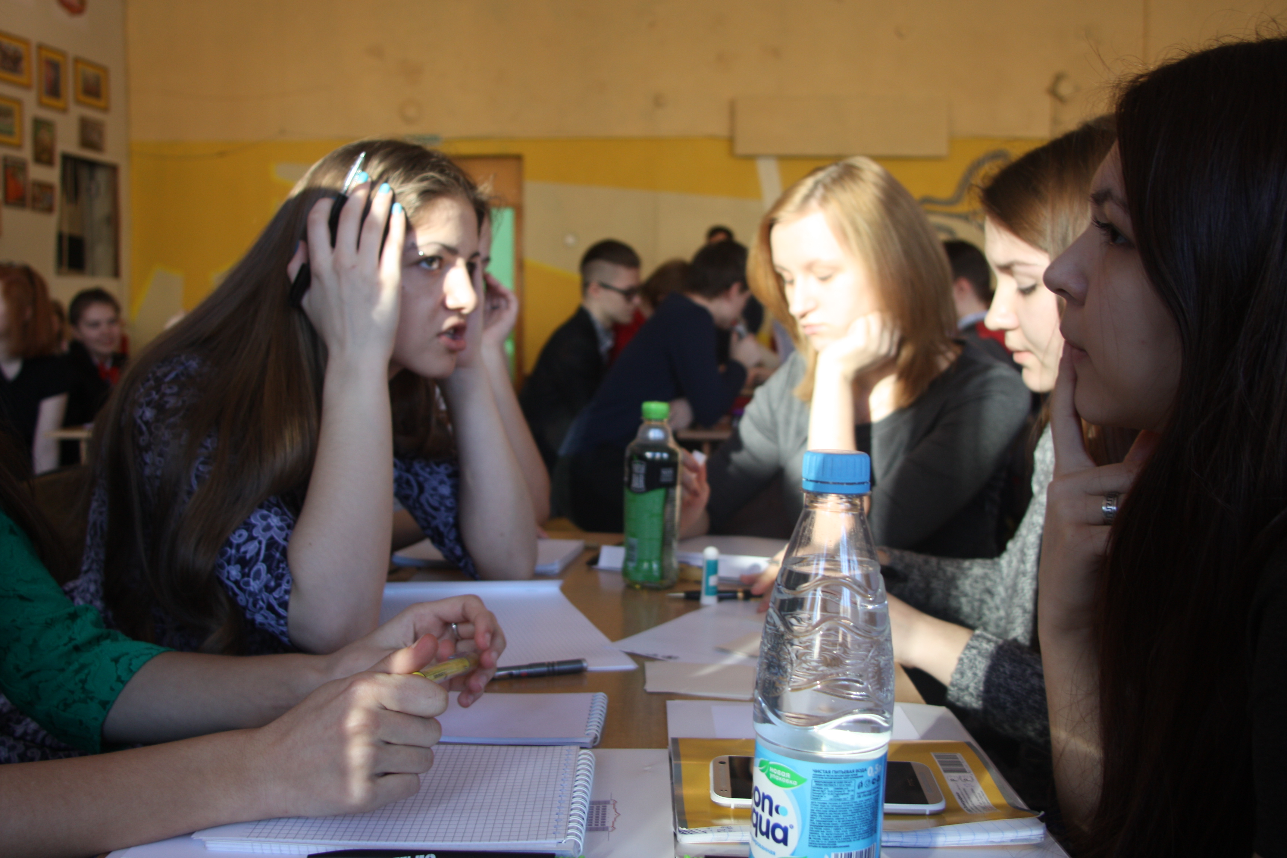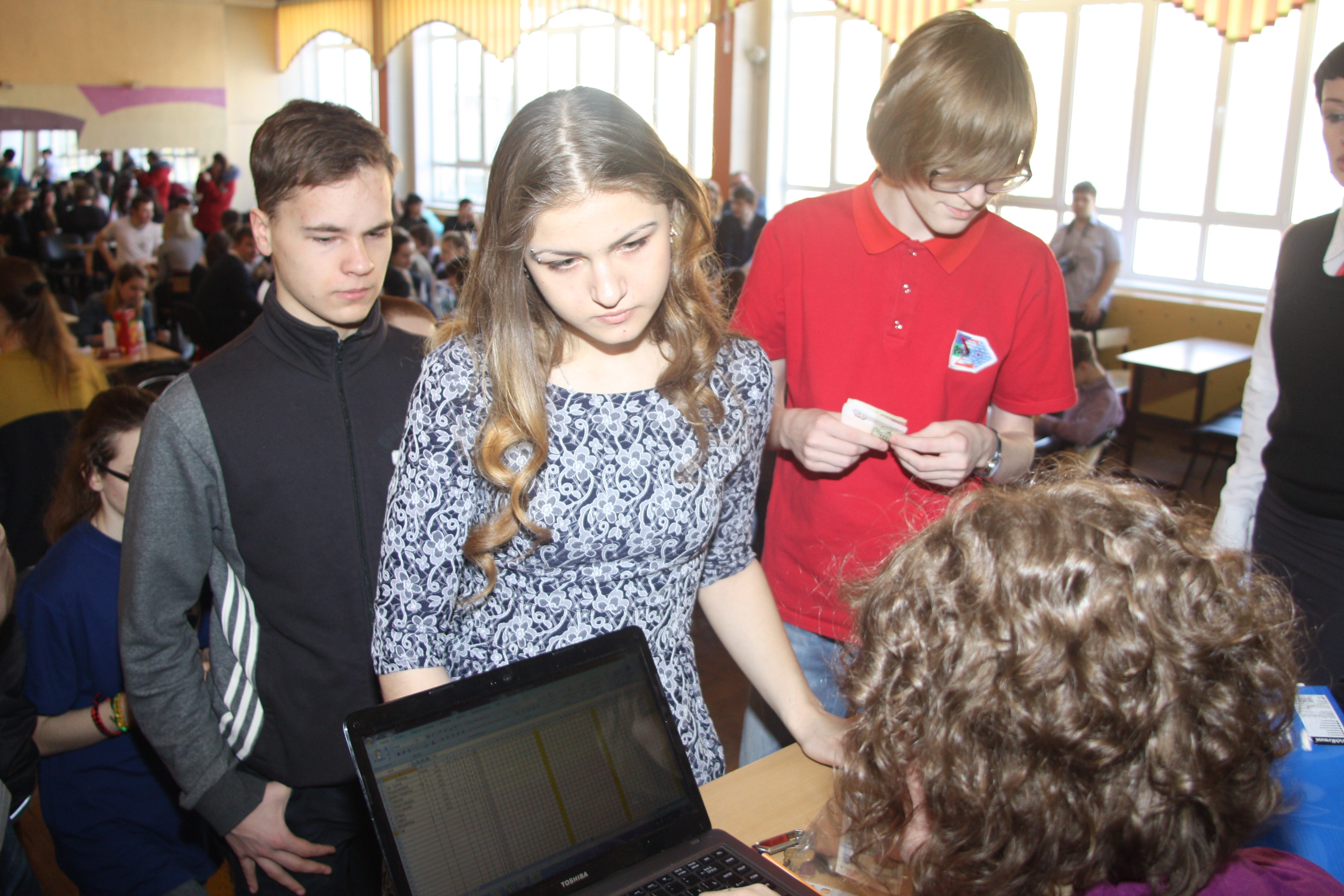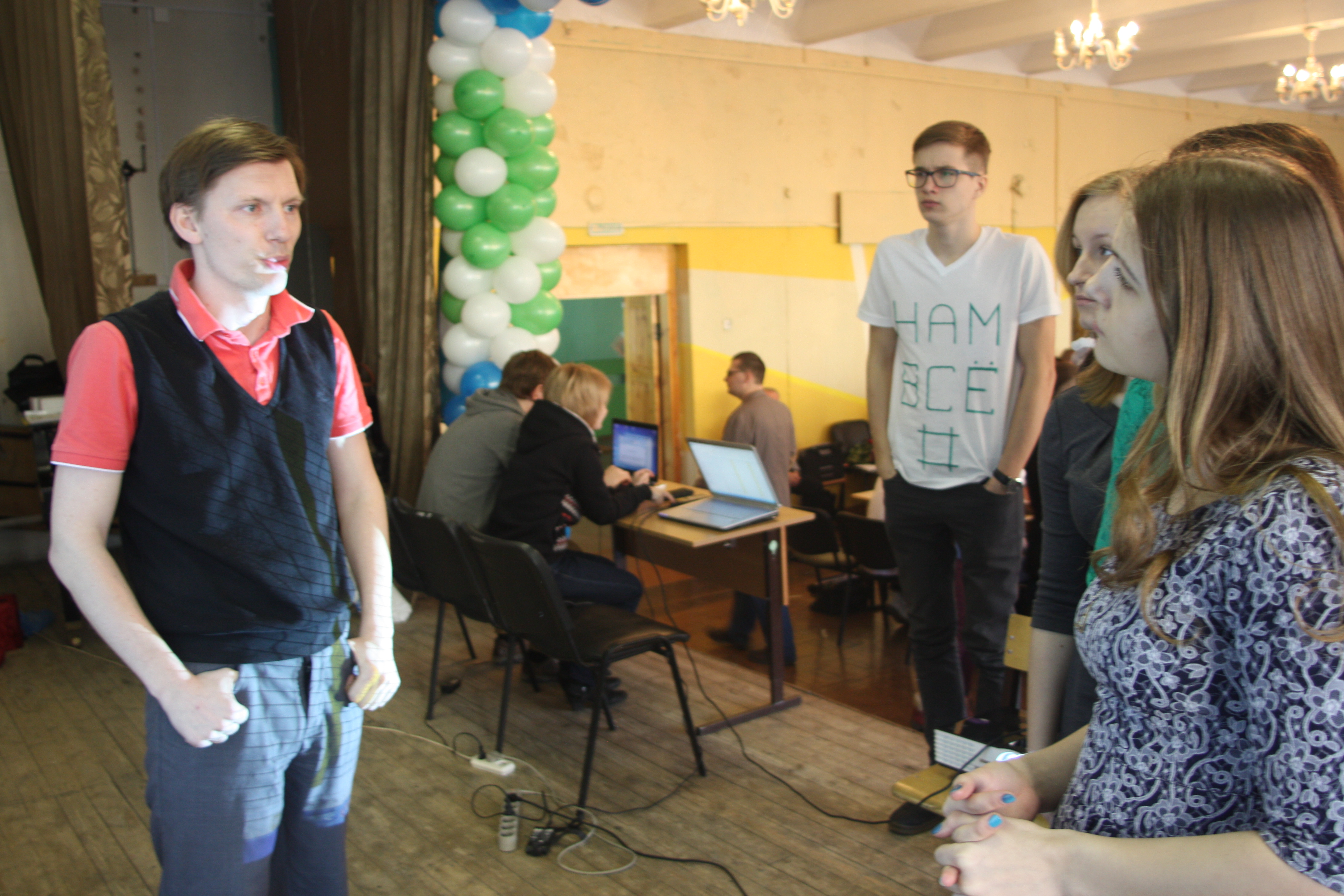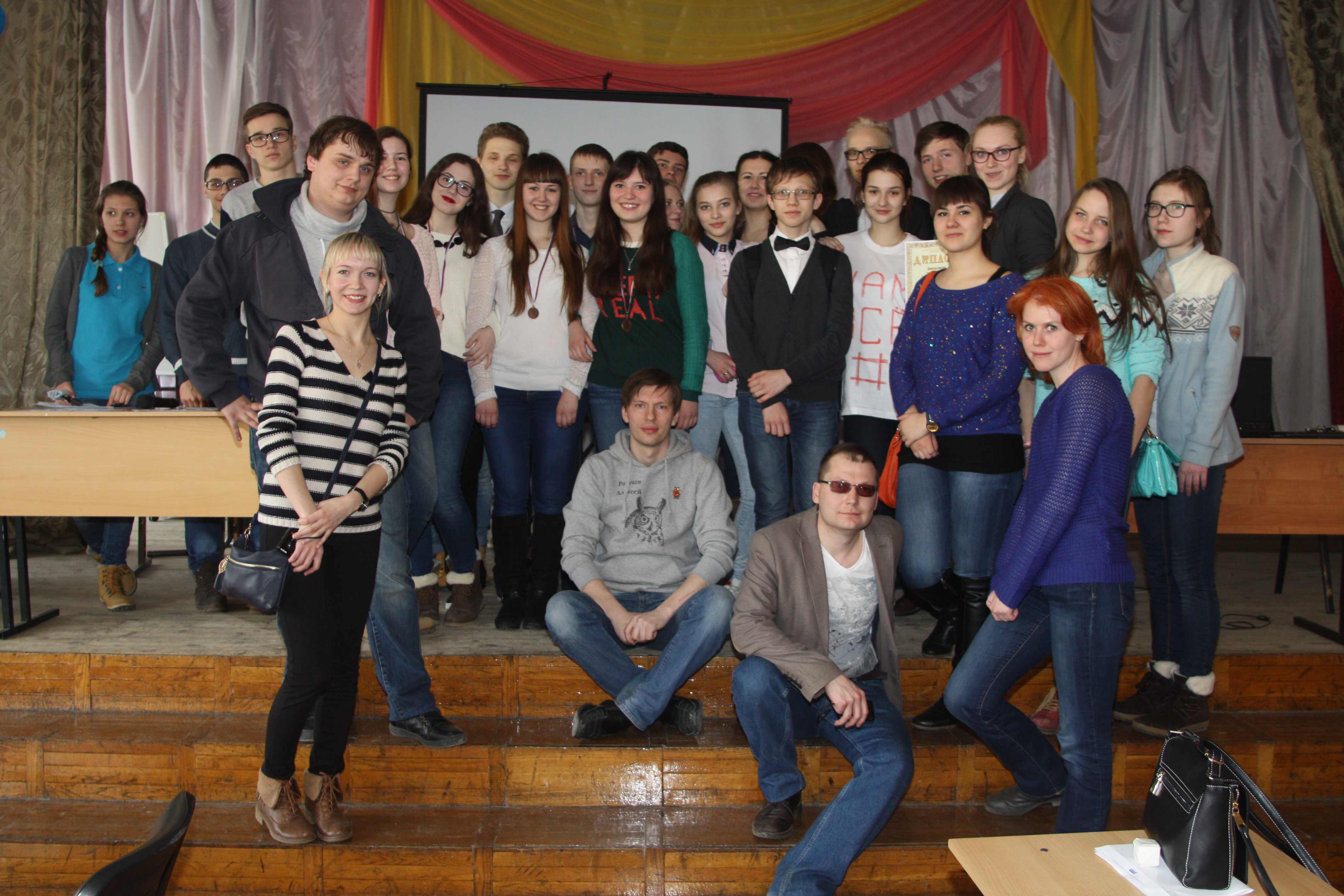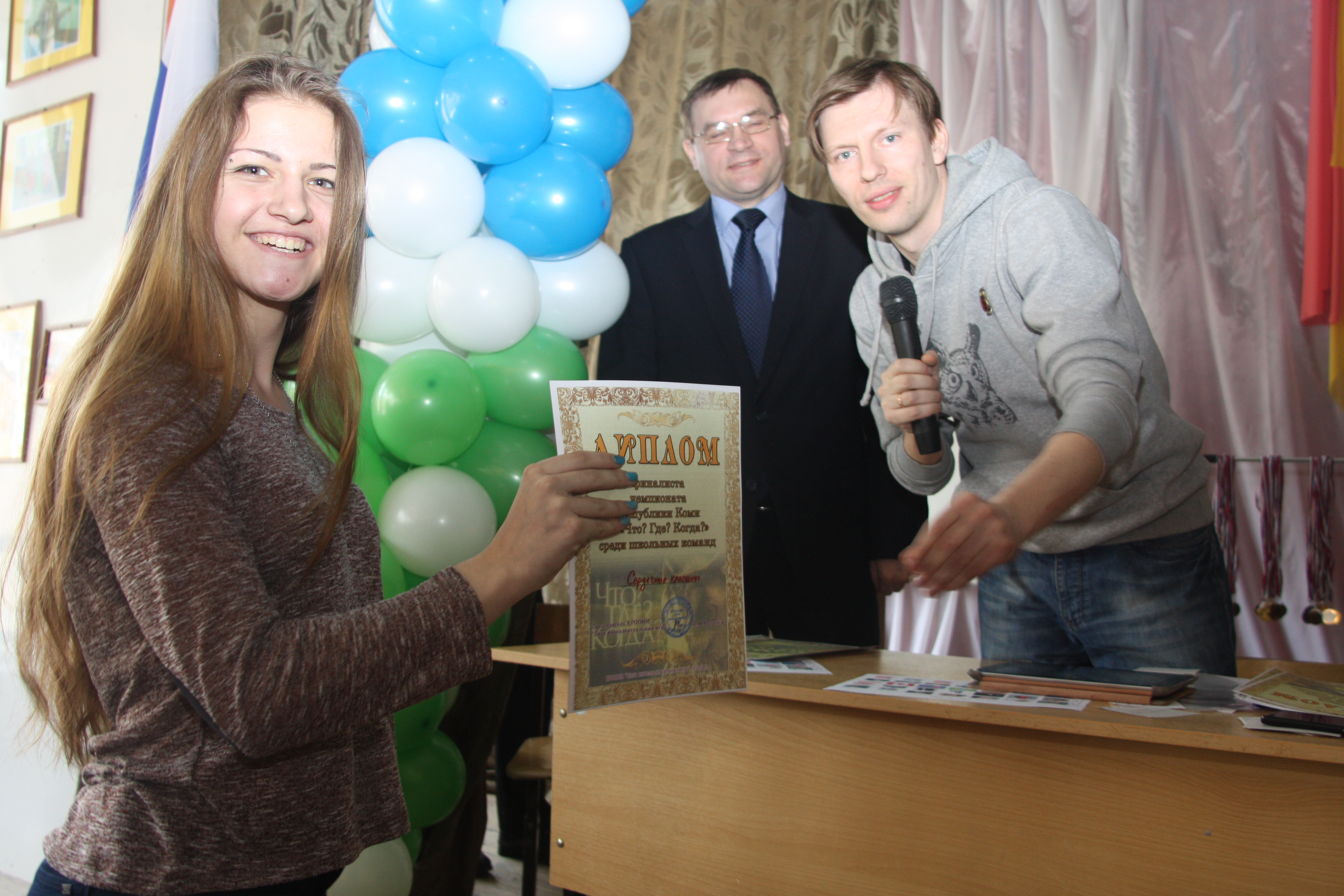 Отыграли первый финальный день. На мой взгляд - все неплохо. Сегодня играли два тура по 12 вопросов. В первом взяли 7, финишировали на 6 месте, во втором взяли всего 3, скатились на 10 место. Но главное - задачу по попаданию в десятку выполняем, все хорошо. Подробнее. Финальная игра проходит в актовом зале СОШ № 18. Организация, на мой взгляд, хромает, много суеты и неразберихи, но мы, как истинные северяне, сохраняли спокойствие. А вот Ухта привезла свои команды за 10 минут до начала турнира: пока они все разделись-зашли-зарегились... Словом, добавили хлопот. Не ахти какой звук, благо, вопросы читает Анатолий Буняев, радиоведущий, большой профессионал и молодец. Читает четко, медленно и правильно. Претензий не было ни у кого, хотя, повторюсь, и зал, и аппаратура не ахти. Сегодня играли 2 тура. В первом взяли 7 из 12, закончили на шестом месте. Похвастаюсь: в финале играют 28 (!!!) команд, вопрос № 6 взяли только МЫ ОДНИ! Это наш маленький успех. Жалко, что тут не рейтинговая система, сейчас бы лихо приподнялись. Во втором туре взяли 3 из 12, в итоге сейчас идем на 10 месте с 10 баллами, у лидера - 17 баллов. Второй тур был сложнее, если в первом туре "гробов" не было вообще (спасибо нам за шестой вопрос), то во втором туре таковых было целых три! Итого - сейчас на 10 месте. От первого места - 7 баллов, далее плотность большая; от третьего места, например, всего 3 балла. Завтра играем 3 тура по 12 вопросов. В жюри сидят Костя Бобров и тот самый Иван Суманеев По итогам двух туров отобрались в групповой турнир по Брейн-рингу, но, к сожалению, из группы выйти не смогли. Опять же, пожалуюсь, не играется Брейн-ринг в Усинске полноценно, опыта таких игр у нас нет. Тут же Брейн игрался по жестким правилам, на ответ давалось всего 30 секунд, после ошибки - всего 10 секунд. Девчонки не привыкли играть в таком режиме, хотя и правильные ответы были - просто не успевали нажимать кнопку; в итоге проиграли все три боя в группе ( где нам попался лидер основного турнира "Диван", у которого те самые 17 баллов, и команда "Бойцы", идущая в первой пятерке), но проиграли мы в упорной борьбе, с разницей в один балл. Девчонкам понравился турнир, адреналина хапнули с лихвой. Наша группа играла первой, но девчонки после вылета остались посмотреть на бои в других трех группах, настолько им понравился Брейн-ринг! Зато мы - самая узнаваемая команда! Девчонки не поленились заморочиться с платьями и туфлями, привезли все с собой, я пробил нам пустую аудиторию (повторюсь, организация хромает), где мы спокойно переоделись, а после произвели фурор в зале! Пример: меня останавливает чувак и спрашивает: ты - Чудовище? У нас тут даже появились поклонники, которые подарили нам шоколадки и коробку конфет. Приятно, спасибо вам Завтра играем еще 3 тура. Надеемся сохранить свою позицию, и финишировать в 10-ке. А пока - несколько фото -------------------- Мой Твиттер: https://twitter.com/mexbaza