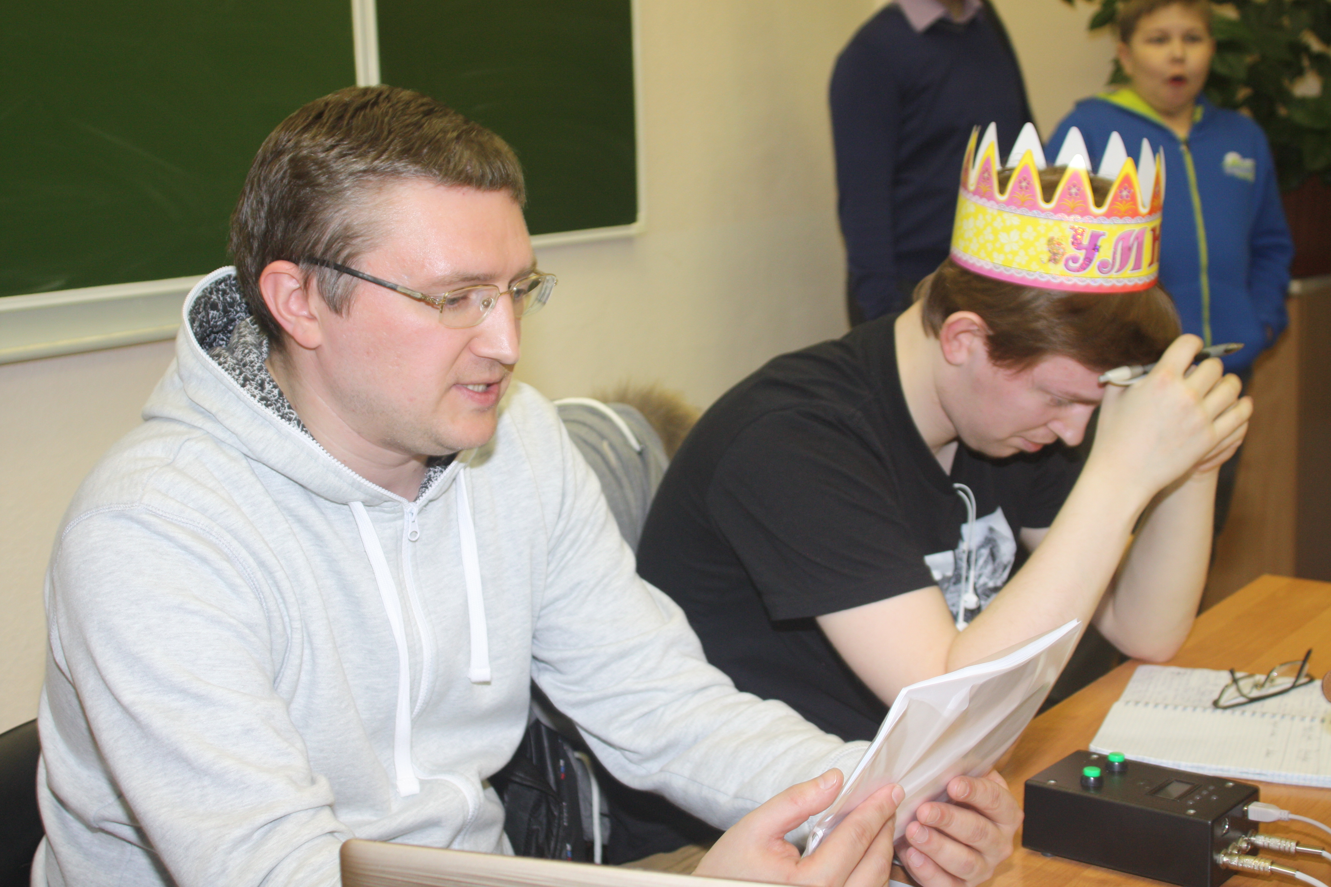 Карина регистрирует команду. Справа - будущий чемпион РК Кирилл Паршуков ("Диван"), который во взрослом ЧРК играет за "Новую дегенерацию". Разминаемся медийками в ожидании основной игры. Как это брать? Что курил автор? После первого тура таблица внушает: 6-7 место. Костя Бобров примеряет корону чемпиона! Алексей Рогачев (большой молодец!) дает мастер-класс "Клапанам". В кадр влез чувак из "Нам все равно" "(Ухта). Иван Суманеев в шоке от ответов "Сердечных клапанов". Да, Иван, наши ответы круче, чем твои вопросы Начинаем Брейн-ринг. Пока соперники не подошли - жми на кнопку! Есть ответ на вопрос! Пересели за красную лампу, вдруг тут больше повезет Прошу прощения за качество фото, особо некогда было снимать, потому что, например, сегодня пришлось даже ласточкой поработать (еще раз про организацию). Завтра сделаем хорошие постановочные снимки -------------------- Мой Твиттер: https://twitter.com/mexbaza