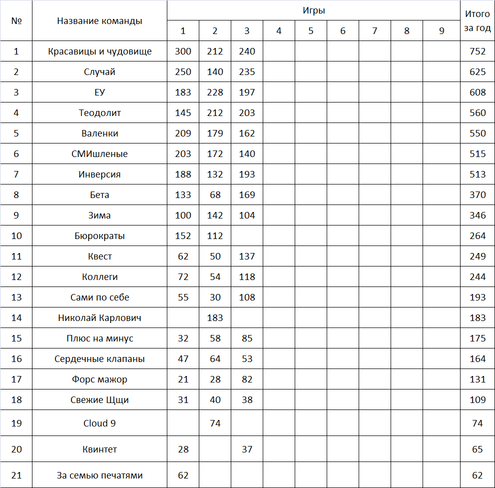 Друзья! Игра сегодня в 19:00! Передайте всем, а то ползут нехорошие слухи про шесть часов - это не так Список команд-участников игры: "Теодолит", "СМИшленые", "Случай", "Свежие Щщи", "За семью печатями", "Бета", "EU", "Плюс на минус", "Форс-мажор", "Бюрократы". А мы собираемся прийти позырить, можно ? 😊 |