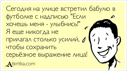это набор несвязаных слов или мне показалось? Я сам до конца не понял, думал кто из наших сумничает ![]() Это, типа, "Сам поставь запятую где сочтёшь нужным и сам посмейся")))))))) -------------------- ...да не ссы ты, пуля смазана йодом, так что рана быстро заживёт.