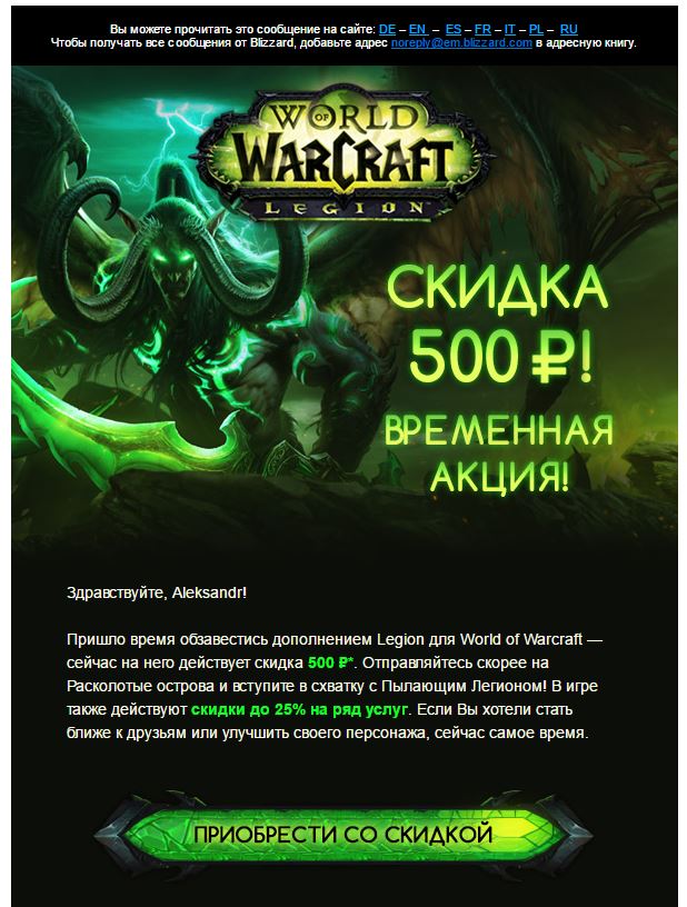 Тоже предзаказ оформил))))) Больше из-за крыльев в Дьябле) тоже купил. не не столько из за крыльев, сколько по привычке и самое обидное, оплатил подписку на 3 месяца. один раз зашел, а потом забыл. вспомнил только через полгода. вообщем на ветер деньги пустил. Больше проплачивать не стал. да и скучно одному там бегать из своих почти никого не найдешь уже. -------------------- Эстонские авиалинии. Мы летаааем быстреее пааровоза.