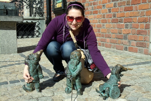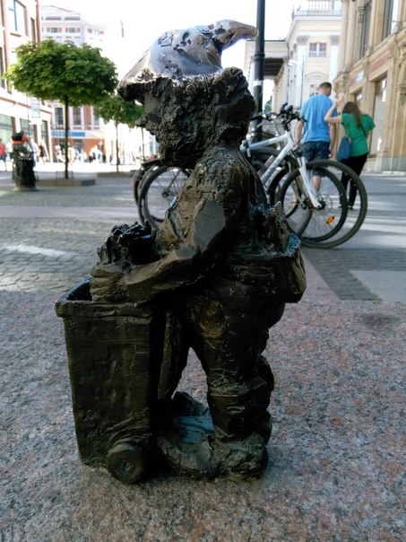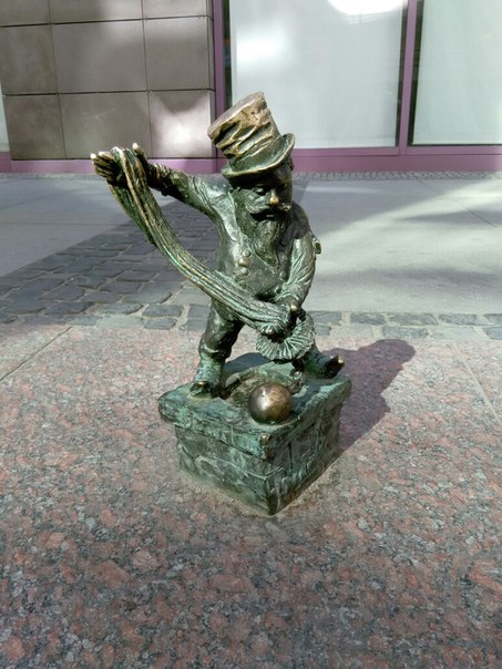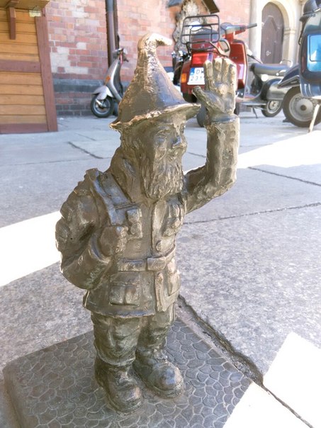 В городе то тут, то там можно встретить махонькие статуи гномов. Сейчас это в некотором роде символ Вроцлава. Но он появился не так давно. С чего, почему и зачем прочитайте вот тут https://ru.m.wikipedia.org/wiki/Демонстрация_гномов |