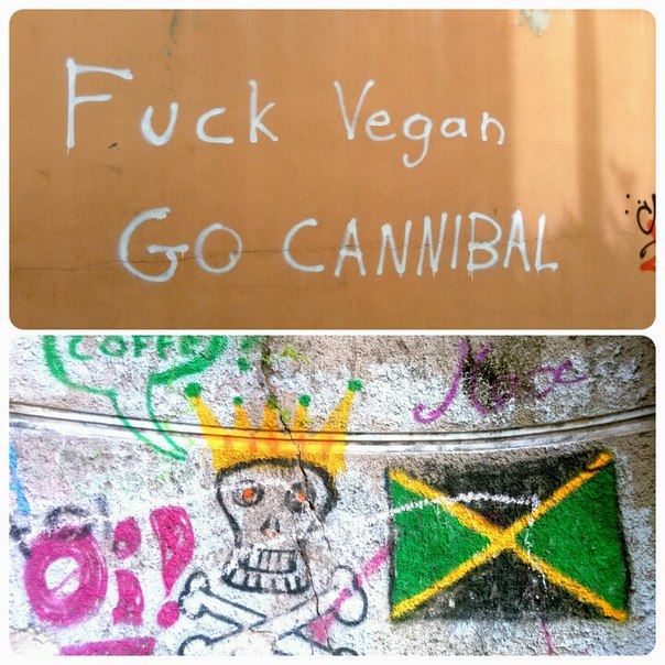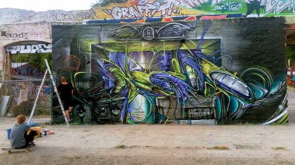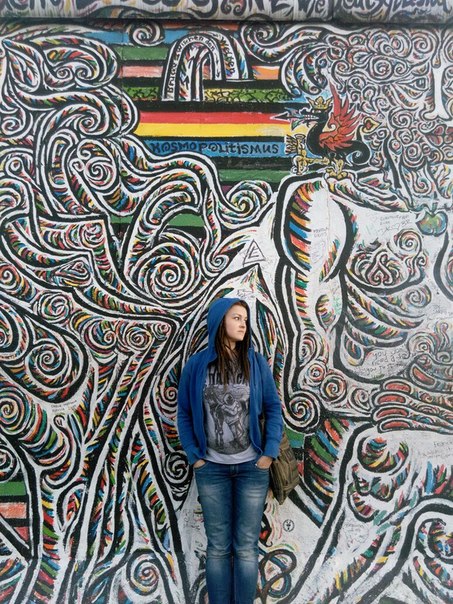 Мы въезжали в столицу Германии на фуре с сумасшедшим водителем-немцем, знающим немного итальянский, испанский, английский. Он говорил на смеси всех этих языков одновременно себе что-то под нос и сам же смеялся, а мы ни черта не понимали, но ради вежливости подхихикивали. Под конец он нам исполнил песню на русском языке из какого-то советского кинофильма. Мы спрыгнули с его фуры на берлинскую землю в то время, когда опускались сумерки. О, этот город... Московскому метро не снилась подобная гремучая смесь людей всех оттенков кожи и состояния души! Через час езды в подземке я поняла - он такой! Это тот город из моего мозга! Безудержный, нелогичный, захватывающий и пугающий! В Берлине мы опять нашли домик благодаря обожаемой Стасе ! Она договорилась с своей двоюродной сестрой Юлей, чтобы та дала нам крышу над головой. В мире столько классных людей! Человеки, спасибо что вы такие и что вы есть!!! На следующий день мы послали к черту общественный транспорт. Зачем сразу оказываться в центре? Надо проделать до него путь, увидеть то, что таится вне словосочетания "исторический центр". И дадада! Я шла и все больше очаровывалась! Переходы, мосты, секонд хенды, бомжи, дворики, супермаркеты(в них цены по-большей части ниже, чем в России), крутой засквотированный дом, множество неформально выглядящих людей, бычки, кучки мусора, чистые тротуары и все-все в граффити! Но о последнем будет отдельно. Сложно осознать, что это столица одной из самых сильных стран Евросоюза. Если я правильно думаю о Германии. Оказавшись на Александрплатц, не сразу сообразила, что это она и есть - главная площадь города. На ней стоит ратуша, высоченная телевизионная башня, костел, несколько ТЦ, строительные краны, перекопанные участки, огромный транспортный узел(трамваи, оба вида метро, автобусы), фонтаны, деревья, лавки и ещё куча всего видимо, что я не успела разглядеть. А так же присутствуют голуби, утки, неизменные бомжи, туристы, аборигены, непонятно к какому виду относящиеся латинообразные неадекватные чуваки, кричащие мне вслед "йохоу, раста!раста!". Все вышеперечисленное хорошенько смешали и высыпали на Александрплатц! И, что удивительное, абсолютно не ощущается дисгармония! Я готова была визжать! Может от того, что подобный кавардак царит во мне почти всегда, я прихожу от этого в восторг?! С прям культурными достопримечательностями у нас вышел косяк. Мы их посмотрели совсем немного. И те, я думаю, благодаря нашей хорошей Юле, которая после работы забрала нас с этой платц и повела гулять. А то мы там могли долго втыкать: Таня кормила уточек сыром, я подбухивала настоечку и глазела по сторонам) Поэтому ни в один костел мы не успели, на крышу Берлинского собора и Рейхстага не попали, памятник холокосту не посетили. Однако намотали кучу километров по улочкам, впечатлились проспектом восточного Берлина(широкий и чистый, сталинки стоят - аки Минск), оценили местный фалафель, побродили по огромному секонду, поохали над остатками стены, когда-то разделяющей город, попищали от вида барчиков на территории каких-то гаражей(там ещё арт-пространство, скалодром и невесть что. Мне кажется, в ночное время там творится такое, что Думская отдыхает, даже днём шерстили менты, заглядывая под кусты), позалипали на высотки из стекла и бетона на Потсдармплатц. Ну и ещё опоздали во второй день на метро. Из-за 