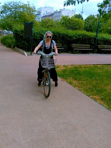 Так вот, Таня имела даже кое какие навыки использования. Но.... Она в итоге выдала: я ненавижу велосипеды и больше никогда не сяду на этот ужас. И поехала домой на метро. А я отправилась в путь по парижским улочкам, радуясь возможности немного прокатиться)) |