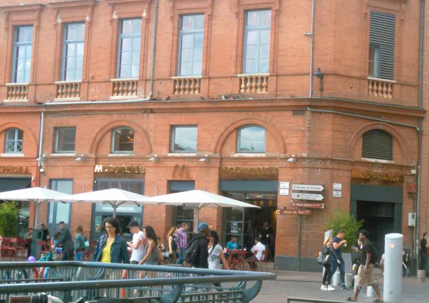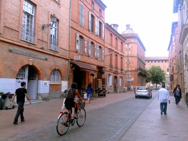 Тулуза - розовый город! А где розовое, там и сказочное. Как в сказке - это наша дорога до неё. Накануне мы вычитали, откуда лучше начинать стопить и с утра отправились туда, сначала электричкой, потом предстояло проехаться на автобусе, который ходит раз в час. Продвигаясь в очереди на посадку, я обнаружила, что в кошельке весело позвякивает куча мелочи, около двух евро от силы. Оглядевшись в поисках банкомата поняли, что остаётся уповать на 21 век и возможность расплатиться карточкой. Но нее, весёлый водитель-француз изобразил пантомиму, означавшую, что нашим надеждам не суждено сбыться, терминала у него нет. Посмотрел на испуганные лица и, улыбаясь, махнул рукой в глубь салона, за что получил от нас раз десять повторившееся "гранд мерси!" А потом я успела только скрутить самокрутку, на прикурить времени не осталось, т.к. не поняла как, но мы уже сидели в машине прямиком до Тулузы! Ну вы же помните - это сказка, так что ничего удивительного, когда спустя сколько-то часов нас высадили около нужного дома) В августе, перед третьим классом, меня сбила машина. И пришлось мне несколько месяцев валяться дома. Так получилось, что тогда я прочитала почти все книги про Анжелику. У многих тогда в домашней библиотеке было отведено место под эти романы. Помню, что в самом первом и любимом томе она некоторое время прожила в Тулузе. И остались с тех пор в голове очень светлые образы города. Я не могла бы их описать словами, но когда прикидывала маршрут путешествия и обнаружила на пути Тулузу, то поняла, что обязательно хочу заехать. Мне кажется, в 9 лет я не задумывалась, что это реальный город и представить не могла, что буду бродить по его улочкам! Настолько интересно касаться всплывающих образов из детства! Помимо прочего, исполнилось ещё одно наше желание - подружиться с негром! Афроамериканцем его назвать нельзя, потому что он из Гваделупы родом. Крис обитает на окраине Тулузы, но в прекрасном жилом квартале. Дома в 3-4 этажа, множество деревьев, кустов роз, лавочек, а прогуливаясь мы нашли и бассейн) При постройке многих зданий в центре использовали специальный розовый кирпич. Выглядит незабываемо, особенно в лучах заходящего солнца! Блуждая по улочкам, совсем не хотелось отрывать карту и узнавать "что, зачем и когда" построили. В Тулузе приятно созерцать и улыбаться, отвечать на приветствия проходящих мимо людей и перекидываться несколькими фразами с некоторыми из них. Не верьте, французы не игнорируют английский! Многие плохо знают, не лучше меня - это да. Но это не мешает им пытаться выудить из недр памяти все известные слова и говорить их вперемешку с родными! И, в отличие от столицы Франции, город оказался очень чистеньким и аккуратным. Мы оказались в Тулузе в те дни, когда там проходил музыкальный фестиваль. Ну как же его не посетить? Мы с Крисом и его друзьями устроили в этом парке пикник, наш негр незаметно протащил туда алкоголь. Сам он решил не пить ближайший месяц, но с радостью угощает настойками своего производства знакомых. О, что это за настойки! Крис с радостью выставлял накануне вечером мне бутылочки, показывая их содержимое. Конечно, я несколько попробовала. Почти все они на роме, с добавлениями привезенных с его родины ингридиентов: бананы, киви, маракуя, ваниль, корица и ещё всякие специи и неизвестные мне тропические фрукты, названия которых та