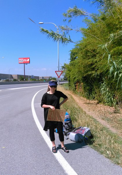 -Да знаю я, что уже куча народу на пляже, - приоткрыла я один глаз, но вылезать из спальника и до конца просыпаться не хотелось, хотя я понимала, что пора вставать, отряхиваться от песка. Сегодня мы уезжаем из Барселоны. -Нет! Я не про то!- Татьянин голос был действительно встревоженным и я, сделав над собой усилие и открыв второй глаз, выбралась на уже припекающее солнышко. Как всегда, в таких случаях, удивляясь, как я под его жаркими лучами до сих пор могла находиться в спальнике. Было около 9 утра, но вокруг уже валялись тела загорающих. И тут я увидела то, что так встревожило подругу: она держала в руках спальник и в нем была дыра, явно проделанная ножом. Сна как не бывало! В глаза бросились её кеды, стоящие в метре от нас. По приезду в Барселону мы сдали рюкзаки в камеру хранения на вокзале, взяв с собой самое необходимое. А на ночь сумки и обувь засовывали вместе с собой внутрь спальника. И вот я смотрю на небольшой разрез в ногах Таниного спальника, рюкзачок тоже пострадал. Мозг быстро активизируется и просчитывает дальнейшие действия. Но, видимо, что-то волшебное нас бережет! Документы, телефон и кошелёк на месте! Тапки, как писала выше, воришки вытащили и поставили аккуратненько неподалёку. Обнаруживаем пропажи: солнечные очки, две косметички и, не поверите, остатки конфеток! Таня жуткая сладкоежка, без вкусняшек долго прожить не может и даже я стараюсь периодически следить, что бы у неё всегда были ништячки. Тут значит стресс, она вспоминает, что накануне убирала немножко конфеток про запас, а их нет! У меня поднимается настроение! Все могло быть намного хуже. Конечно, я понимаю, что Татьяне не до смеха. Представляете, что для девочки есть косметичка? Да ещё в условиях странствий! И спальник подранный жалко( Мы даже купаться не стали, желания оставаться на этом пляже лишнюю минуту не было никакого. А нас предупреждали, что в Барсе куча воров и стоит быть осторожней. Но каковы наглецы! Резать спальник с человеком внутри! И неудачники) По дороге к метро выпили кофейка, прогулялись по необычному кладбищу - это был огромный колумбарий под открытым небом! Забрали свои вещи и отправились на трассу. Хичвики писал, что мы долго не простоим на указанной позиции. Если бы... Обозначенную заправку мы нашли без проблем, прошлись от станции электричек несколько километров с рюкзаками под палящим солнцем. Мы сами выбрали свой путь и вид путешествия! Я отдала Татьяне очки, в её же теперь гоняет какая-то красавица, а я не очень люблю загар "под водолаза". На часах 3 дня, а наш путь лежит на восток, пора знакомиться с Италией! Однако день "веселостей" продолжался. Пост же главным образом про них. Сначала вокруг нас нарезали круги детишки на великах, парочка мальчиков лет двенадцати, но наглости посылыть воздушные поцелуи им хватало. Герантофилы юные! Но главная неожиданность случилась чуть позже. И предстала она в виде другого аборигена. Машины лениво проезжали мимо, мы их стопили, одновременно загорали, а я ещё и косички Татьяне подплетать взялась. Прошел мимо парнишка лет 15. Уж не знаю куда он направлялся, дело то происходит на выезде с заправки на автобан. И слышу я "пссспсс", оборачиваюсь, а он стоит метрах в двадцати, спрятавшись за столбом от дороги, и помахивает мне своим членом. Знала бы испанский, обязательно объяснила тогда эксгибиционисту малолетнему, назначе