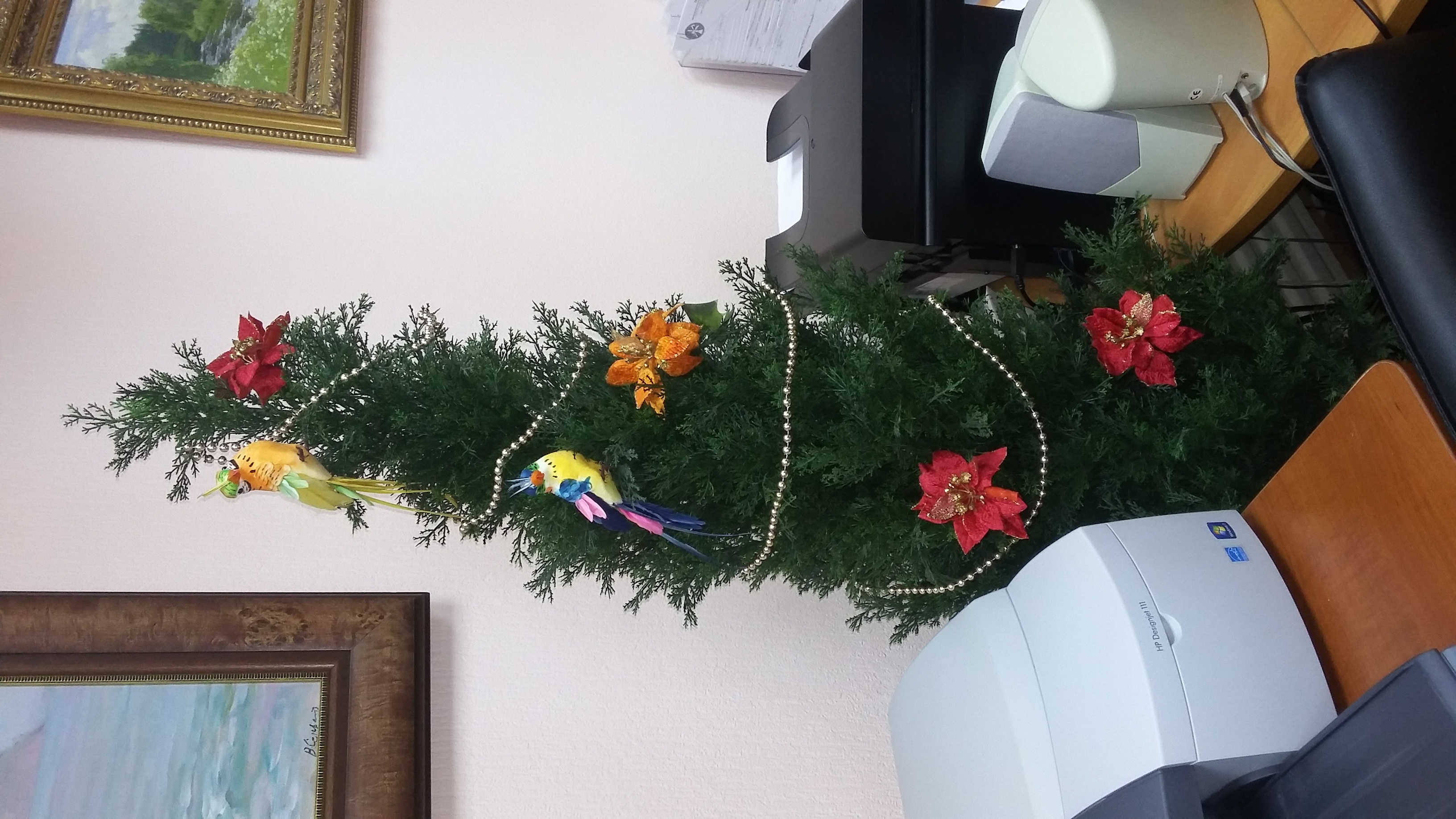 А я кабинете сегодня кустик нарядила. Похож на елку)