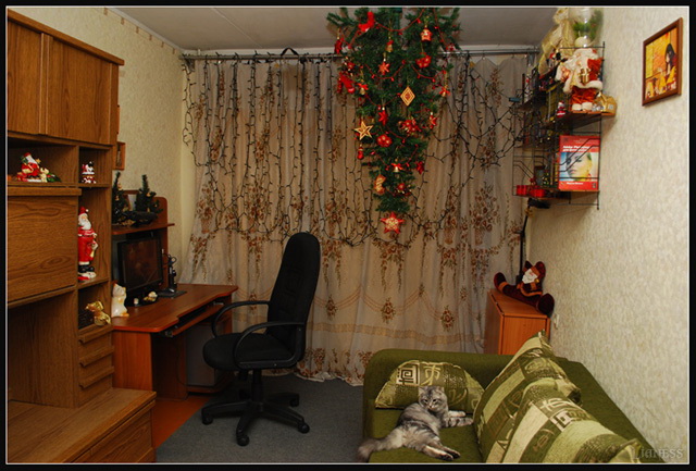 Первый раз вижу ёлку на потолке )) Не встречал ещё. Мне нравится !! Оригинально ) особенно, учитывая обстоятельства.
