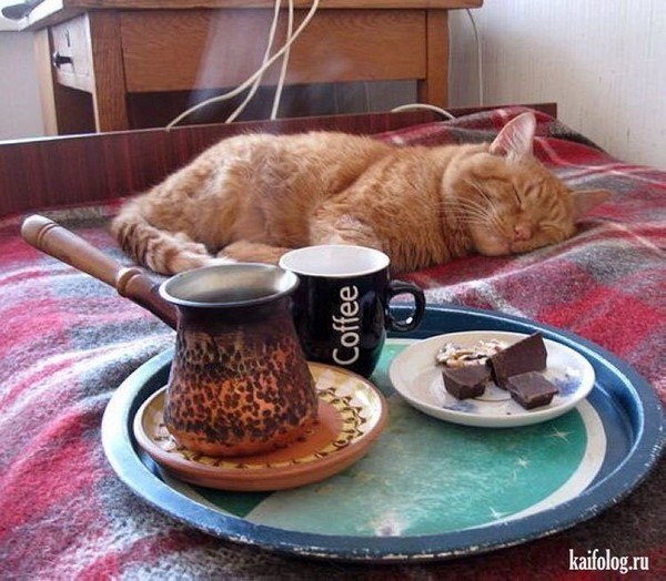Любимый пирожок в тему: Когда в постель приносят кофе, Возьми его и молча пей. Не нужно спрашивать: А кто Вы? И, что вы делаете здесь. (Г. Губерман). -------------------- Предчувствуя неладное, Му-му еще с вечера наелась пенопласта....
