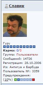 Кстати, "Предупреждения:" ну вот можно удалить. Понятно же по полоске что это. Согласен, полоски достаточно. Скажите, кто из вас, каждый день смотрит на количество сообщений, дату регистрации и, особенно, номер пользователя? Номер пользователя по мне не нужен, а вот Кол-во сообщений и Дата регистрации очень полезны, я смотрю часто ! Особенно, когда боты атакуют. |