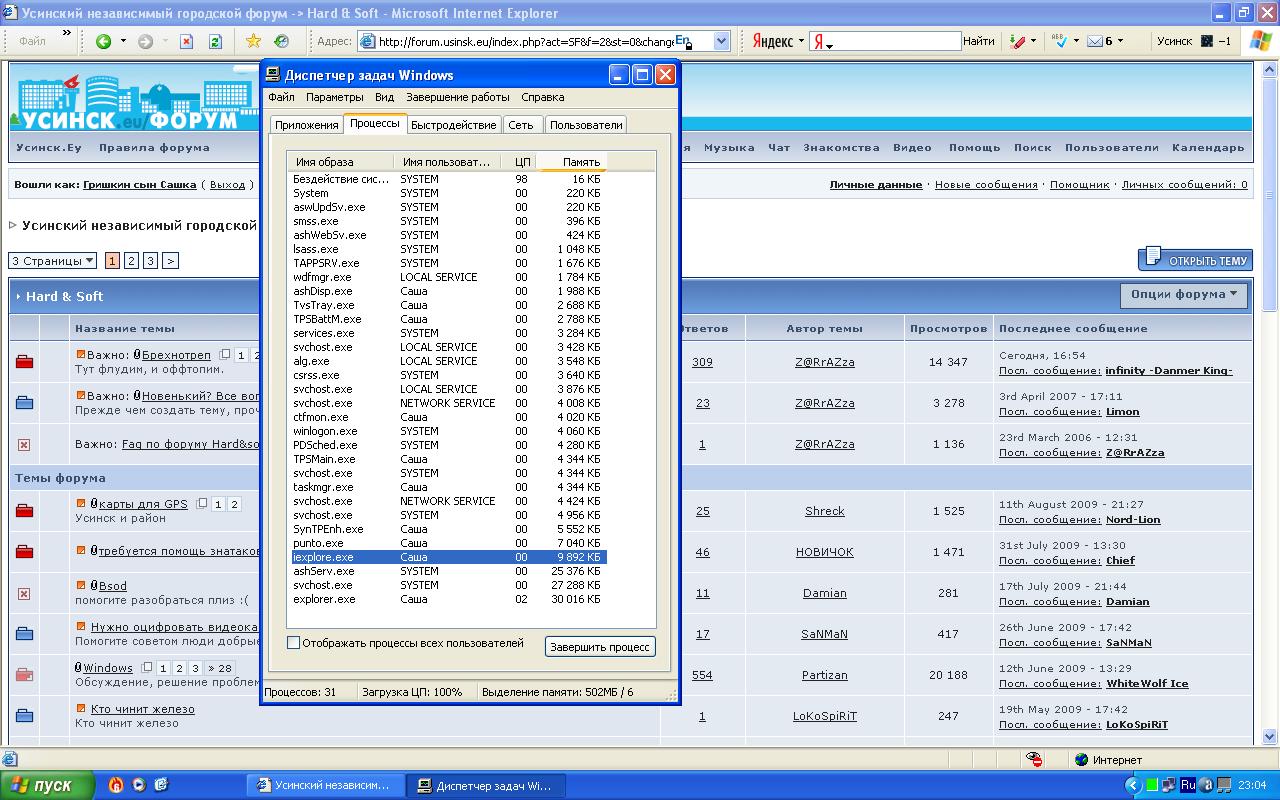 попробуй завершить процесс explorer, а потом запусти по новой, из Файл -> Новая задача (Выполнить) - > Напиши explorer.exe и нами Ентер Вдруг да поможет Не помогает. Попробуй ево от пыли почистить и термопасту поменять. Не могу разобрать. Какие-то провода мешают. лечить не пробовал? Если нет антивируса - установи, может быть там какой-нибудь глист ресурсы хавает. Странно - вся мощь процессора без нагрузки. Где-то что-то гадит. Прогнал др.веб курит. Все чисто. да, кстати... всё таки обязательно следует посмотреть температуру через BIOS, ещё до загрузки Windows. Не понял как это. При выставлении управления питания на "Экономия ресурса" - не шумит, но и тянет слабовато. При высталении питания "Обычный режим" или "Максимальная мощность" - начинает выть. Сообщение отредактировал Гришкин сын Сашка - 3.10.2009, 0:34 |