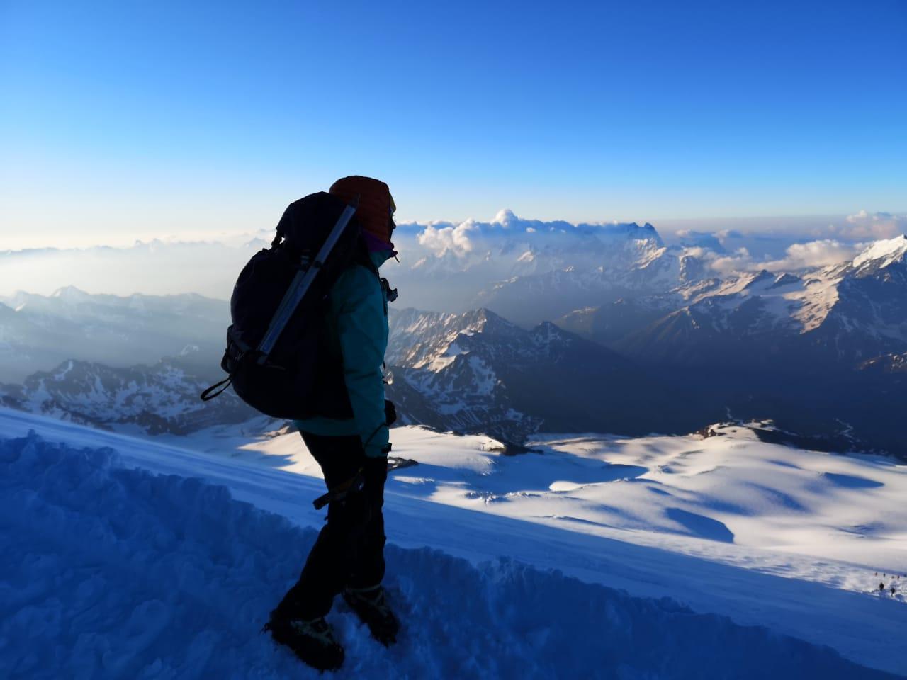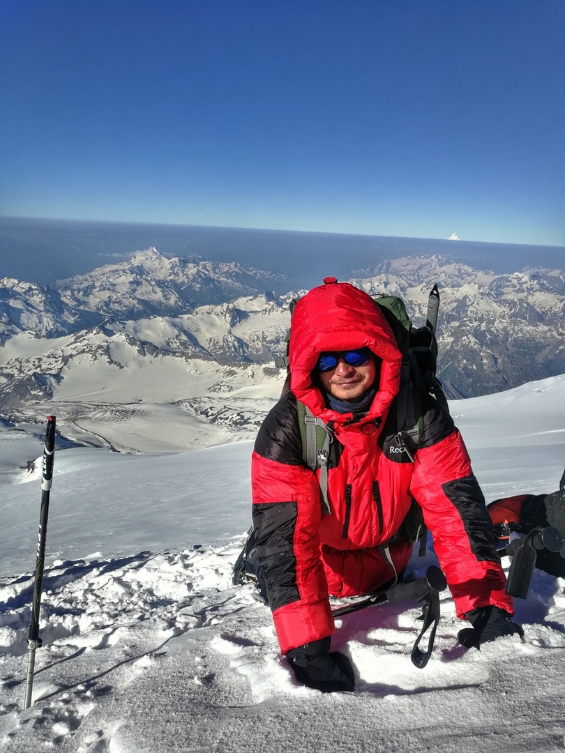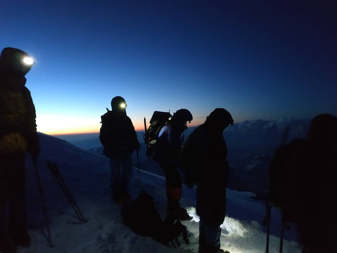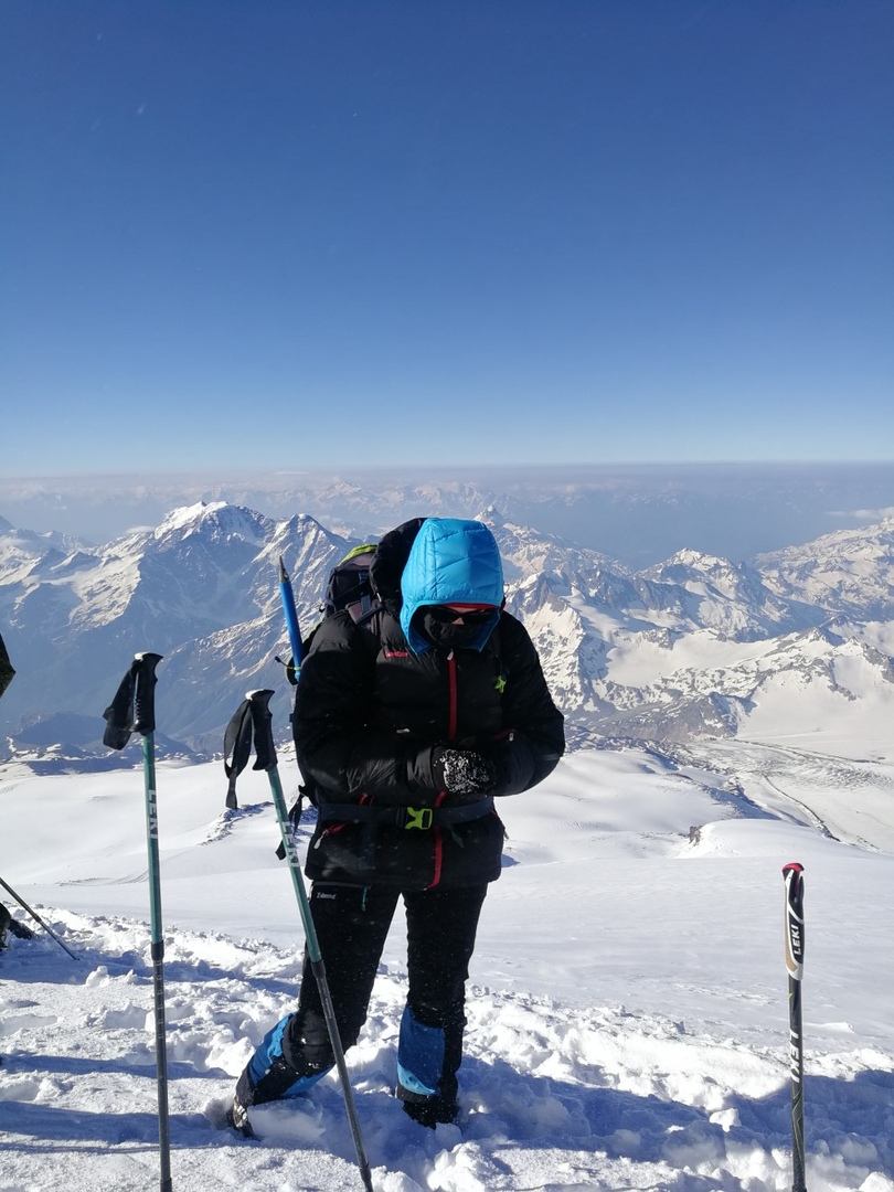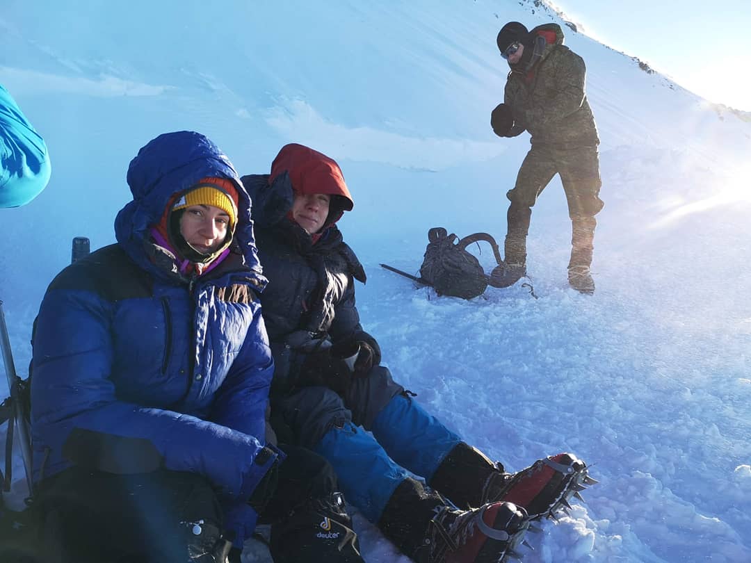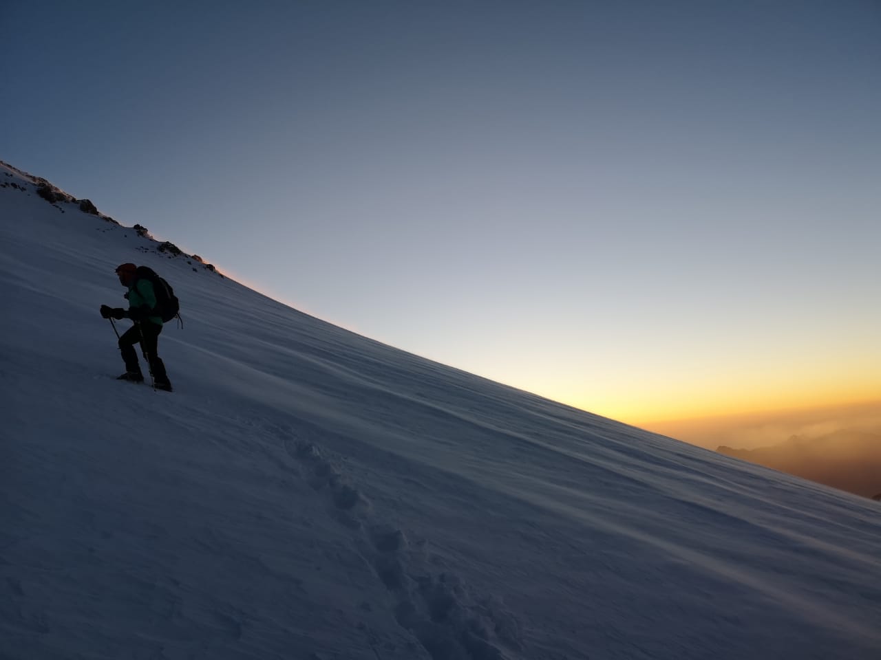 И только немного завидуешь тем, Другим, у которых вершина ещё впереди" Часть 3 Восхождение🏔 В приюте мы выжидали погоду. И вот в один прекрасный вечер, Алексей сказал, что подъем в 23-30, завтракаем и идём на вершину. Небо было ясное и была надежда, что все пойдёт как мы задумали. Спать надо было лечь в 17. Эта была главная задача, отдохнуть перед восхождением. Скажу так, на 4100м. ночью не получается нормально поспать, а тут днём надо уснуть. Я выпила снотворное, но уснула только на час! После, просто лежала. Рюкзаки были собраны, оставалась только собрать себя и налить в термос чая. И вот в 0-40 мы, включив фонарики поползли вверх по склону, навстречу вершине. Каждые 200 метров мы отдыхали и вот к рассвету мы добрались до верхних скал Пастухова 4800м. Рассвет на горе-одно из самых красивых мгновений восхождения. Ты идёшь долгое время в темноте, освещая фонариком маленький участок снега под ногами, а потом раз и понимаешь, что фонарик уже не нужен. Поднимаешь голову и видишь это🌄..... Застываешь на месте и стараешься запомнить каждую мелочь этой огромной, прекрасной картины! И все это прямо сейчас по-настоящему. Чем выше поднимаемся, тем маштабнее виды. Ощущение свободы и вневременности. Главный Кавказкий Хребет поражает своим величием и количеством вершин. Одна Ушба чего стоит 🖤🏔 Потом была косая полка, длинная и утомительная. На седловине (5300м) отдыхаем и переводим дыхание перед сложным участком. Там же дождались Славика 😁. Пьём чай, перекусываем. Впереди нас ждал достаточно крутой подъем до предвершинного плато, а потом 72 метра до самой вершины. Для меня самыми сложными были эти 72 метра 😃 ноги уже отказывались идти сами. Все восходители напоминают зомби. Ты идёшь, падаешь, потом встаёшь и снова идёшь, идёшь... В 11-30 мы на западной вершине Эльбруса 🏔 Высота 5642 метров. Крепкие объятия, смех, улыбки, радостные крики заставляют забыть про усталость. Это было великолепно и незабываемо. Просто кайфуешь от всего вокруг🖤🏔Сложно это понять, но обязательно надо испытать! Спасибо всей нашей команде. Спасибо Эльбрусу, что позволил подняться и все это пережить❤ -------------------- |