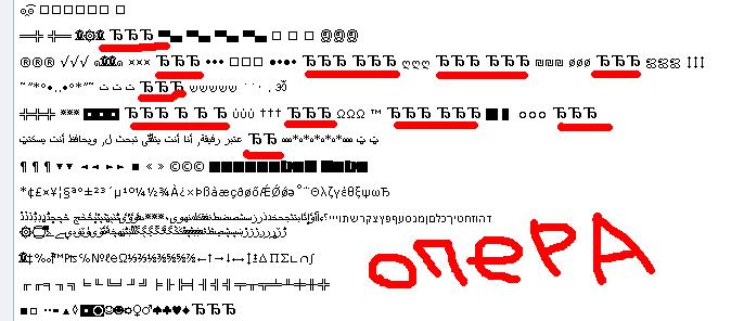Поможите. У меня Опера не весь "юникод" видит. Вместо символов ставит занк похожий на букву "Т" с "Ь" скрещенную. как исправить? пытался сам искать, ниче толкового не нашел. другие браузеры не предлагать ))))