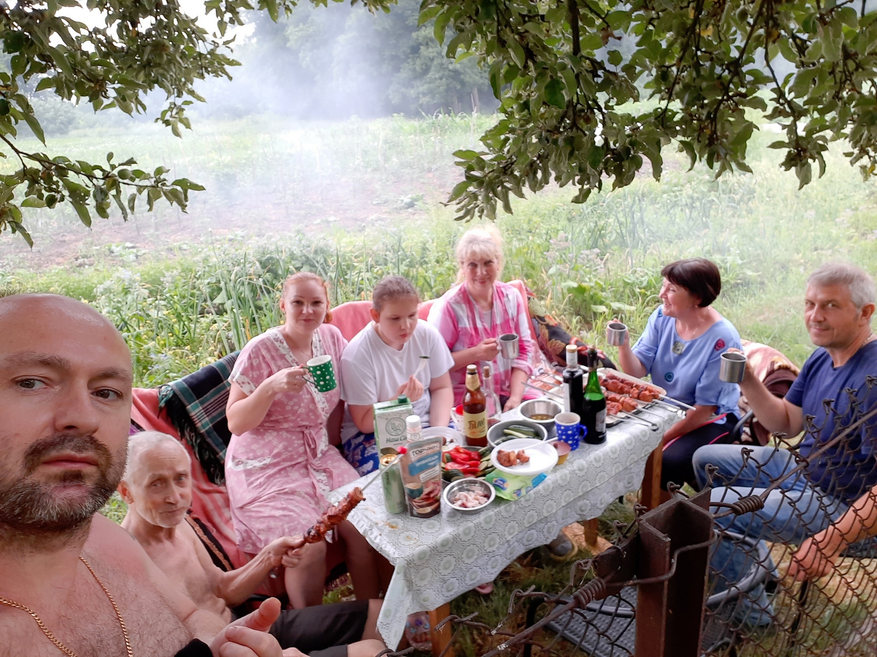 В первый день мы просто съездили уже днём в местные магазины, АТБ...Сильпо. Хотел обменять денег в банке, но там оказался слишком заниженный курс. Даже в соседнем городе за 30 км, узнали что курс на много выгоднее. Если не ошибаюсь то по месту за 1000 р. давали 362 гривны. А в соседнем городе уже 374. Решил занять у отца налички. (Для справки, в 2019 году курс обмена был на много выгоднее , примерно 1000=425 гривен. Но уже после лета 2019 года, в течение последних 2-лет он постепенно стабильно снижается и снижается..........Рубль к гривне падает, и не временно, а уже два года). Менять в Украине деньги выгоднее всего и не в банках, и не у менял. А в частном обменном пункте, который работает сетью по всей стране, Absolute Finance.....у них минимальнейшая маржа. Но он есть только в крупных городах и на всех курортах. Работает в Украине и Сбербанк, но он даёт очень не выгодный курс, если ты нашел в самом выгодном месте например 374, то в Сбербанке курс может быть равен 340. А государственный Ощадбанк даёт максимально низкий курс, примерно 1000=250 гривен. Более менее из них даёт курс нормальный это ПриватБанк. Но в банках менять не стоит, как я уже вышел писал. Купил пива. К примеру Черниговское светлое 1 литр стоит 18 гривен, это примерно 49 рублей. Купили мяса к шашлыку, шея свиная. Не помню цены. И много чего ещё. Съездили на речку покупаться...Десна. На этом день прошёл. На следующий день с утра поехали в соседний город Шостка (30 км), на рынок скупиться, денег поменять и бензина заправить. Заправки там где живет отец есть, но они не самые качественные. Находясь там, я всегда заправляюсь только в заправках WOG, у них бензин качественный. Ближайшая нужная мне заправка WOG, была только в Шостке. Бензин 95 Мустанг, на заправке WOG, на тот момент продавался по цене примерно 32 гривны за литр, что равняется примерно 86 рублям.....жутко дорого, но там все ездят на ГАЗу........он стоил летом около 17 гривен литр. На других заправках мелких частных можно купить 95-ый по 27 гривен. Но я там не заправляюсь. В Шостке на рынке мы купили самое главное.... черешни, малины, клубники...и кучю остальных фруктов. А ещё.....любимое украинское сало. Вечером дома замариновали мяса для шашлыка. Я делаю на томатах...сок с мякотью из перекрученных помидоров. Естественно туда множество разных специй. Лавровый лист, черный перец горошек побольше, лук, приправы для шашлыка, соль. Мясо получается невероятно сочным. На следующий день на территории возле дома, между огородом и домом мы устроили пикник. И соседей пригласили. -------------------- Пропаганда не делает из людей идиотов, она изначально на них рассчитана.