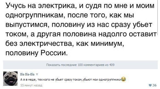2. Студентка-психолог из Нью-Йорка специально наняла плотника, для того чтобы поставить эксперимент о том, как среднестатистический человек реагирует на придирки к своей работе.Через 4 часа работы под присмотром студентки и непрекращающихся комментариев, плотник набросился на нее с топором и сделал калекой на всю жизнь. 3. Супруга зашла на кухню и увидела что ее муж дергается в конвульсиях, держась за электрический чайник, включенный в розетку. Она схватила швабру и постаралась оторвать мужа от электроприбора, сломав при этом ему руку в двух местах. До этого момента муж слушал альбом своей любимой группы на своем любимом Walkman'е. с вас станестя -------------------- |