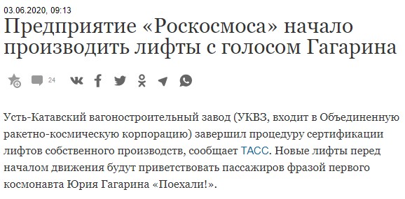 Так Роскосмос давно ракеты запускает, чтож им после Маска удвоенно запускать?)) А вот лифты, с заменённым в прошивке одним файлом, Маск еще не осилил
