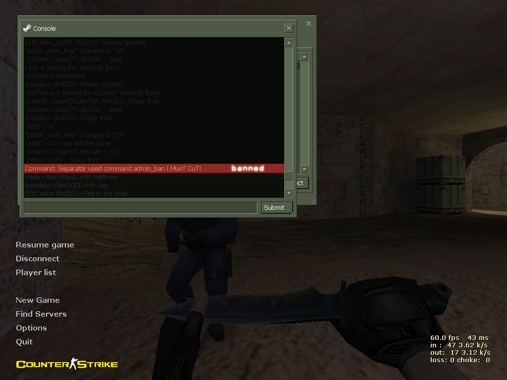 Бан игроку под ником I Must Cut - читы. Сега,а ты пожалуйста скинь демо где читы ты там увидел. -------------------- ....Max_payne