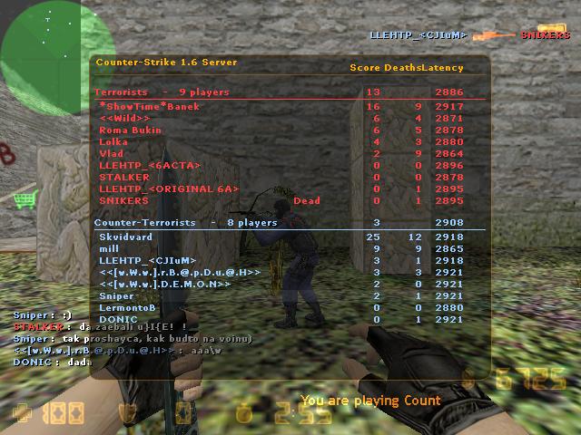 Когда у нас на сервере будут нормальные админы,а товсе читерят кому не лень.Не совневаюсь что и сами админы читерят наверно. понабрали сброд какой-то! так че у нас на серваке уже любой патч катит.как помню раньше выше 19 не катило! А у тебя вообще какой "НИК" в CS ?? -------------------- ...span... gamer for Counter-Strike!