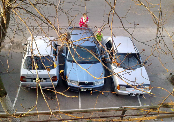 Я вот думай подловить как-нибудь такого наглеца во дворе и помехой справа заехать в бочину легонечко, а то бампер-бы покрасить передний не мешало по чужой страховке
