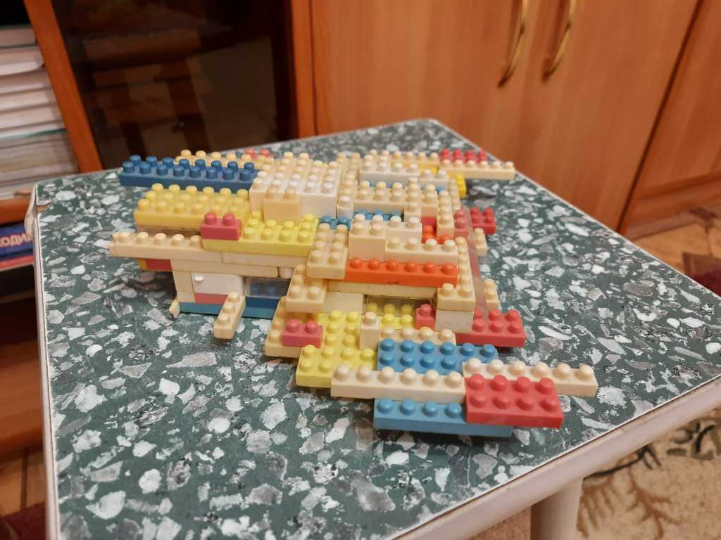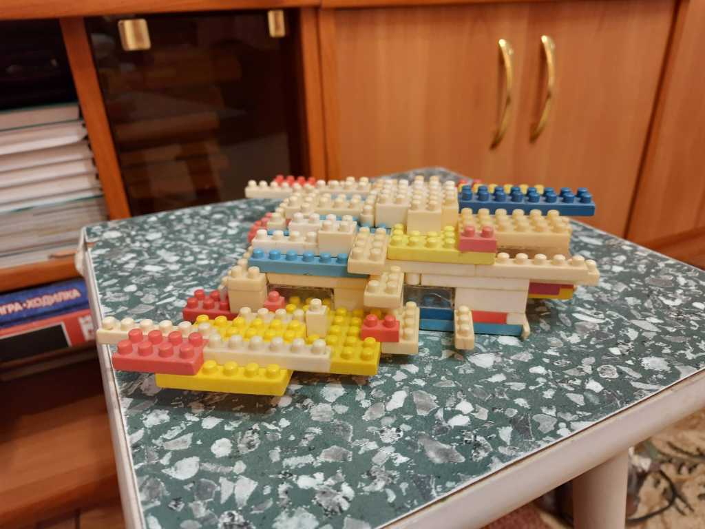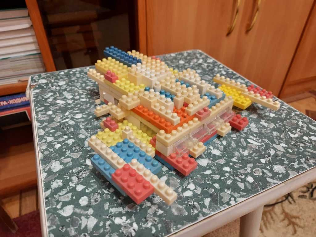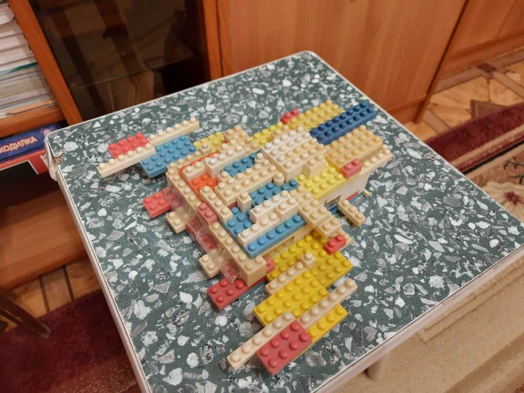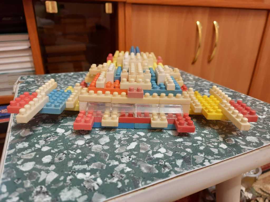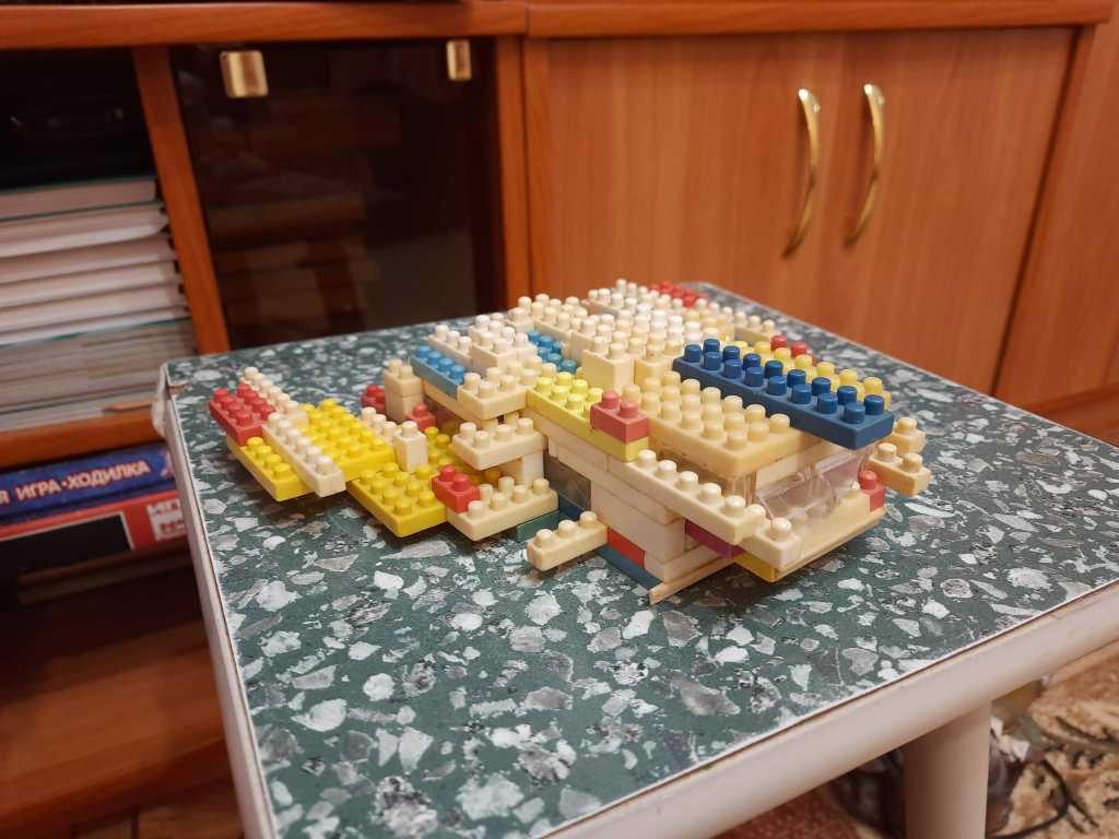 Тоже космический корабль, можно отнести к лёгким транспортно боевым кораблям. Типа "Тысячилетнего Сокола" из "Звездных Войн". Хотя он конечно больше.....но у меня просто нету ещё деталей, использовано абсолютно всё что было. Внутри кстати тоже есть отделка. Кресла экипажа, спальные места, бытовой отсек, грузовой и так далее. -------------------- Пропаганда не делает из людей идиотов, она изначально на них рассчитана.