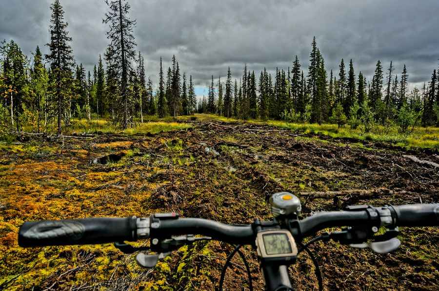 Все те же покрышки.. и тот самый «черный конь» с веломаньяком-водителем )) Поехал разведать новый маршрут в п. Сынянырд..оказалось не разведать. Старт 12.00 t=13°C, вероятность дождя 90% навигационное оборудование отсутствует бензин не требуется ) запас воды 2 л карта (маршрут в последней картинке) Самое интересное и непредсказуемый участок начинался с точки О После точки А потерял направление (сбились магнитные датчики организма – видимо пятничное застолье дало о себе знать, оно и включило режим питлейна (с искусственным ограничением скорости) – на низких скоростях сердечный ритм 150-180 уд/мин) Добрался до карьера Сынянюр-2. карьер есть, дорог нет ) видимо зимний ) А оттуда хорошо виднелся мост через Усу.. и железная дорога .. долго не думая рванул до железки и по ней до моста. Добрался до магазинчика п.Сынянырда часов в 18 00 .. оказалось закрыто.. непруха ) Оставалось еще 200мл водички.. до дому хватит… Обратно ехал в режиме энергосбережения - пульс нормализовался (130 уд/мин) под нагрузкой. Темнело .. холодало .. В общем то дорога от Сынянырда до асфальта водозабора достаточно хорошая укатанная, за исключением участка этого самого перекрестка где автомобилисты накатали грязевую ванну в треть моего колеса. Днем наверняка туда бы добрался за 2 часа из Усинска. Вот и асфальт – дальше дело техники.. добраться до дому.. уже с использованием фары. Итого – неповторимый сложный маршрут (84 км ) Общее затраченное время 10 часов. Время движения 8ч.15мин, видимо остальное время было потрачено на разглядывание всякой дичи в лесу, поедание ягод и прочие неблагоприятные обстоятельства (t вечер=+9°C, местами дожди) карта маршрута : -------------------- Забанен